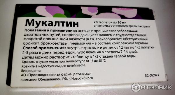Мукалтин от мокроты