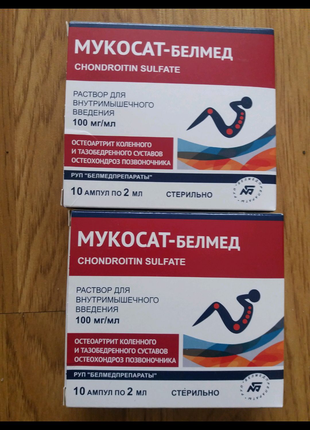 Мукосат-белмед раствор : инструкция по применению . Формы выпуска: раствор . Мукосат-белмед капсулы . МНН: Хондроитина сульфат . ФТГ: Нпвп . Цены в аптеках Минска . 2,50 - 20,43 р . Где купить .