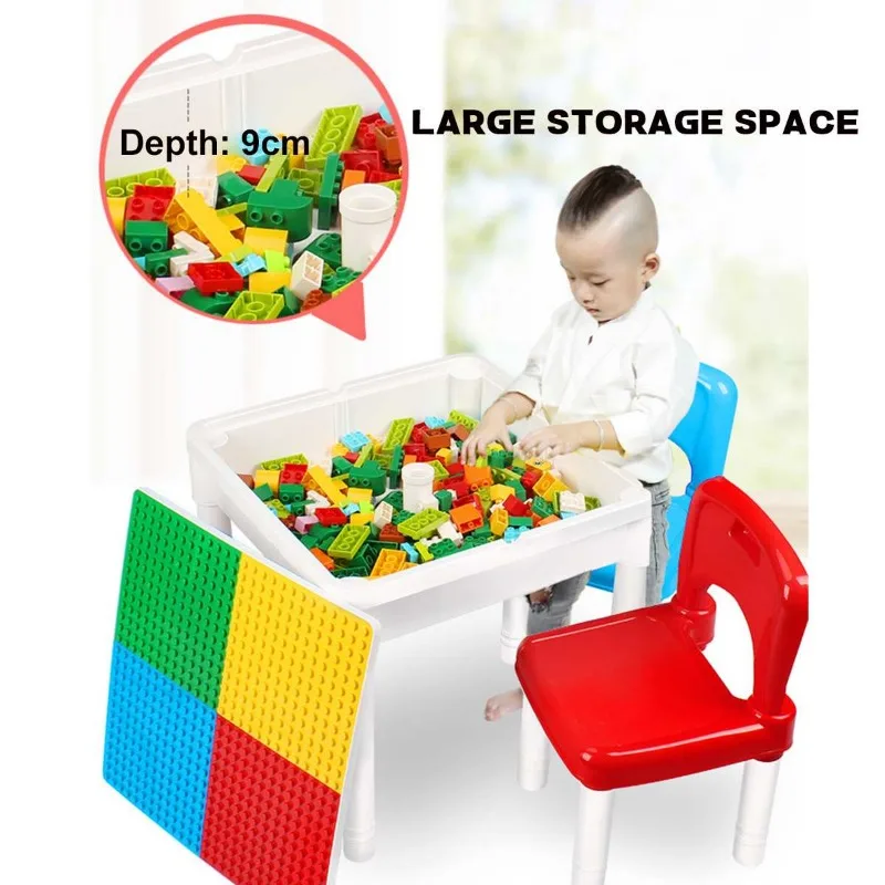 pmgPOrlVwWHere you can buy Multi-Function Building Blocks Table With Two Chairs Small and Big Particles Baseplate Desk DIY Children Toy Kids Gift with free delivery to your post office.