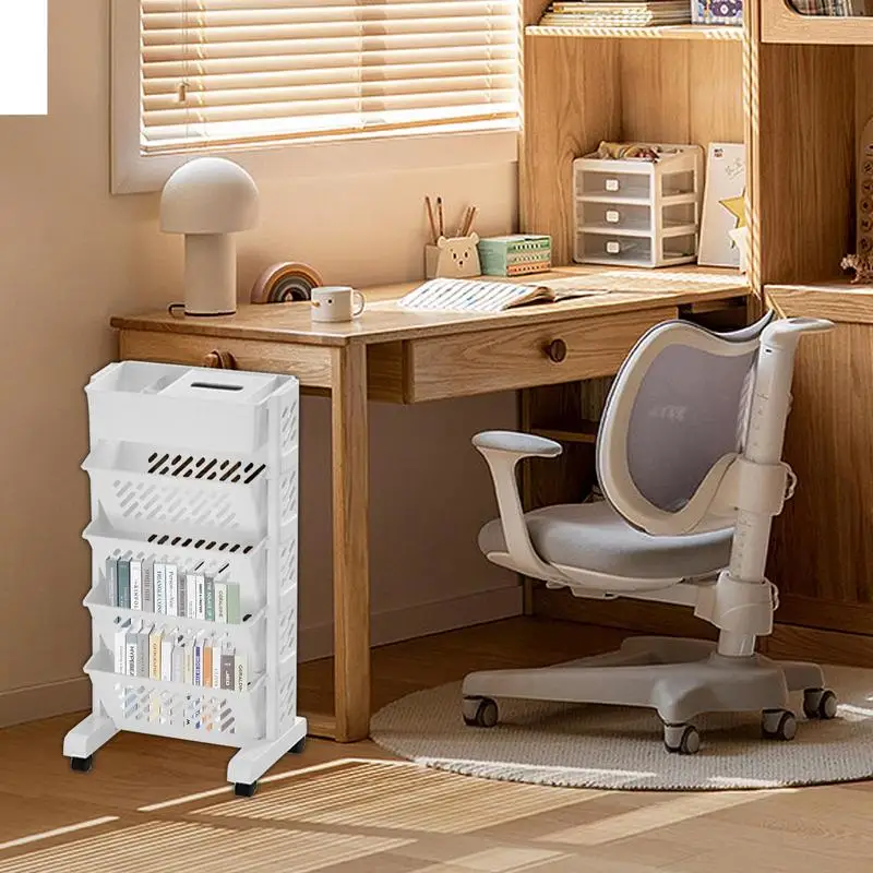 yCXkUDqsHere you can buy Multi-function 5 Tier Bookshelf Organizer Mobile Bookshelf With Wheel Large Storage Rolling Utility Cart Removable Desk Bookcase with free delivery to your post office.