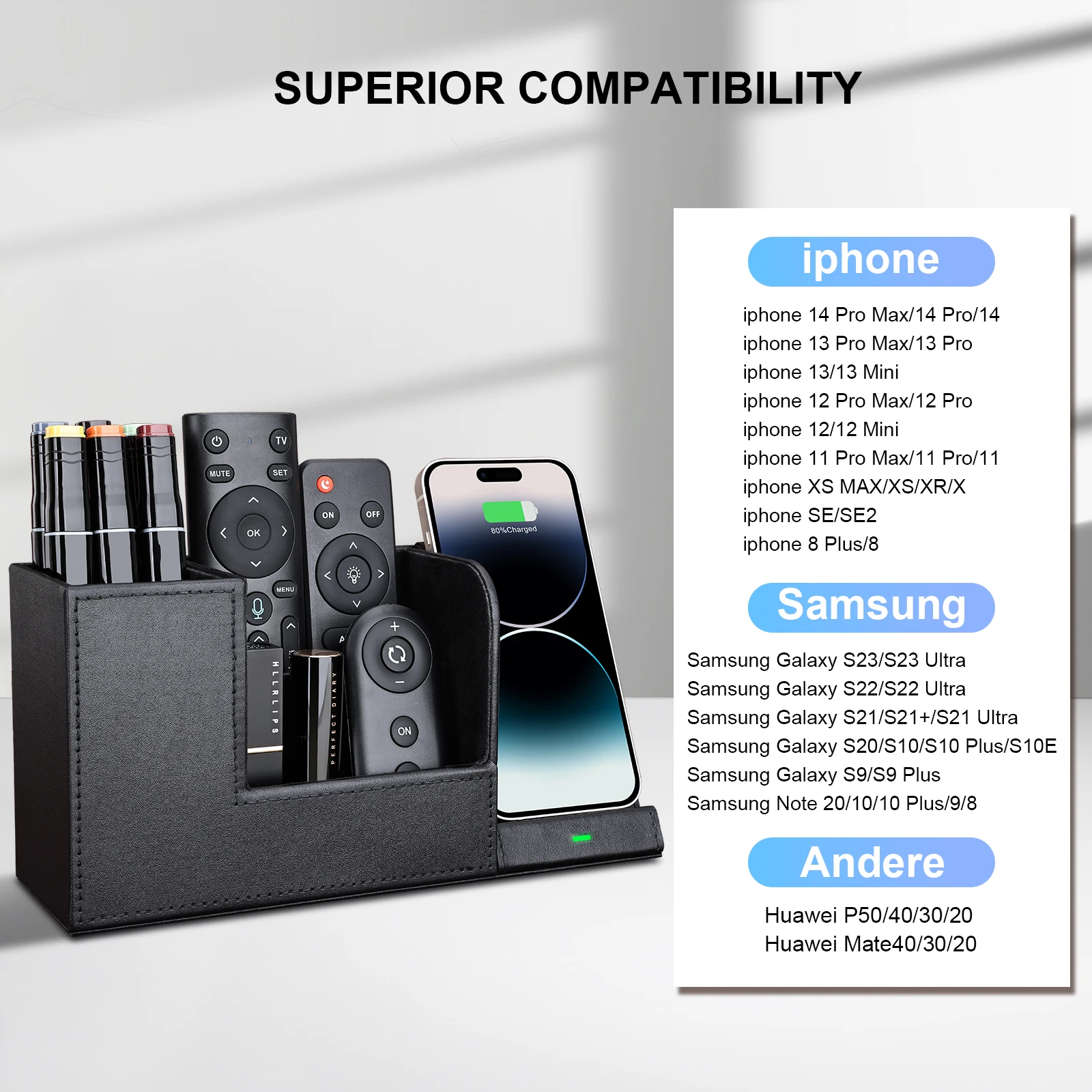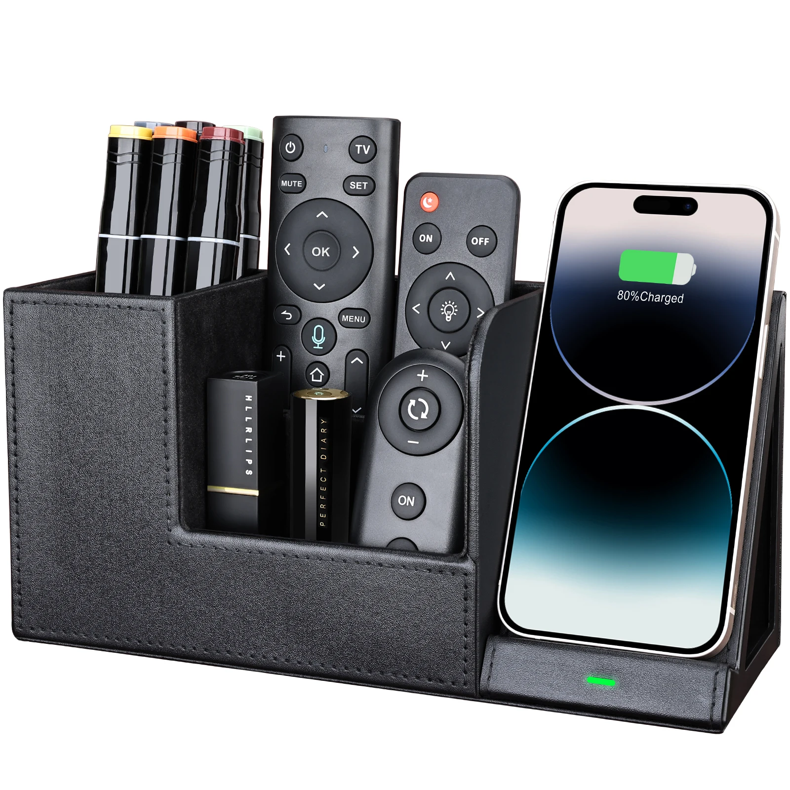 ZJqeEEjvNHere you can buy Multi-functional Desk Accessories Storage Box with 10W LED Fast Wireless Charger Stand Mobile Phone Docking Station Pen Holder with free delivery to your post office.