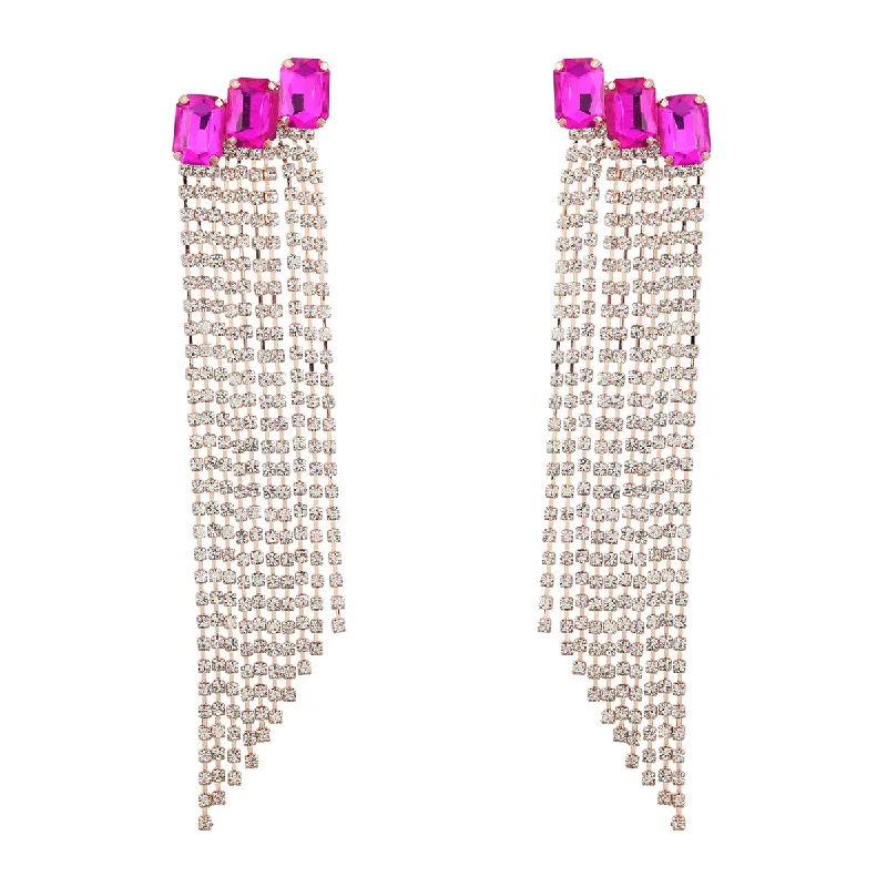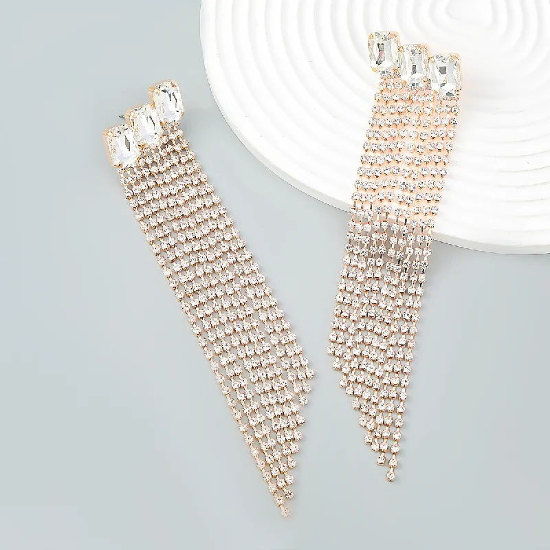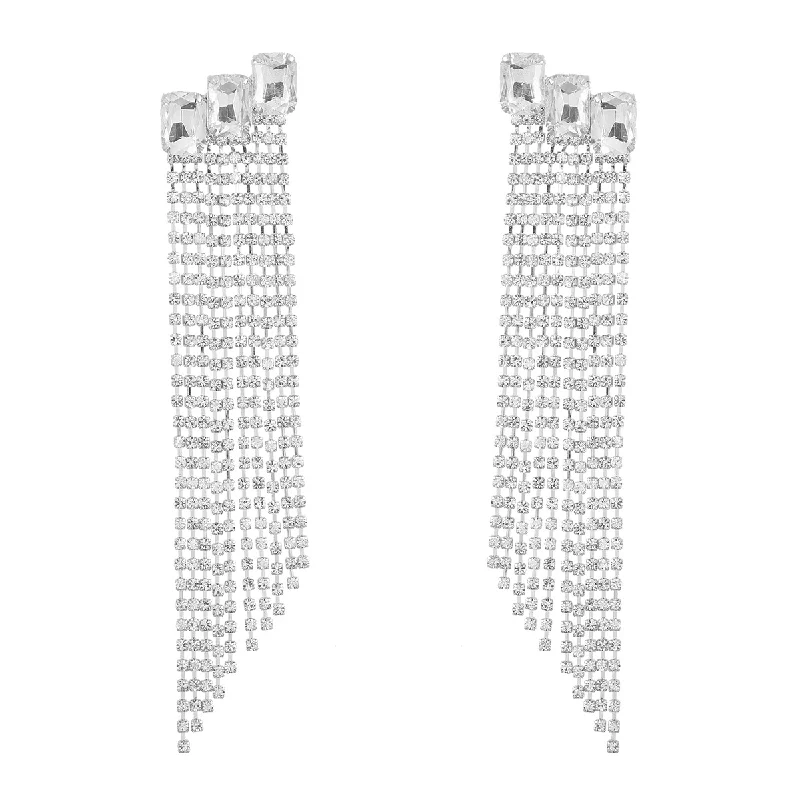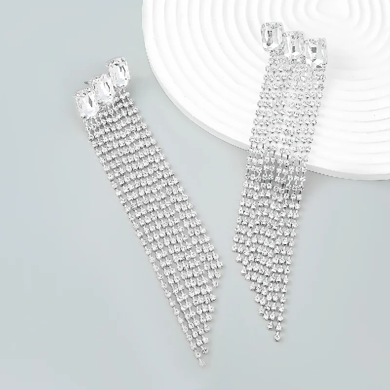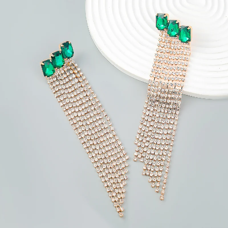 Multicolor Square Stone Rhinestone Long Tassel Chain Drop Earrings Party Jewelry for Women Crystal Multi-layer Dangle Earrings - Купить с бесплатной доставкой