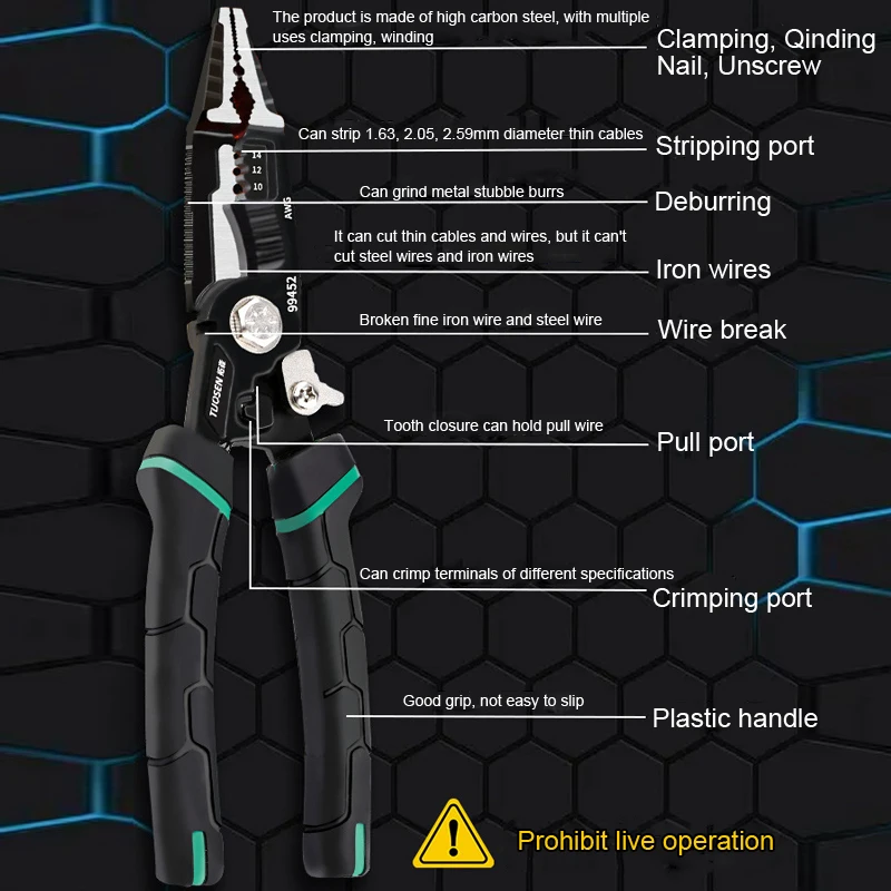 Multifunctional Crimping Pliers 10 In 1 Wire Cutters Cable Stripper Long Nose Plier Multi-tool Professional Hand Tools - Купить с бесплатной доставкой