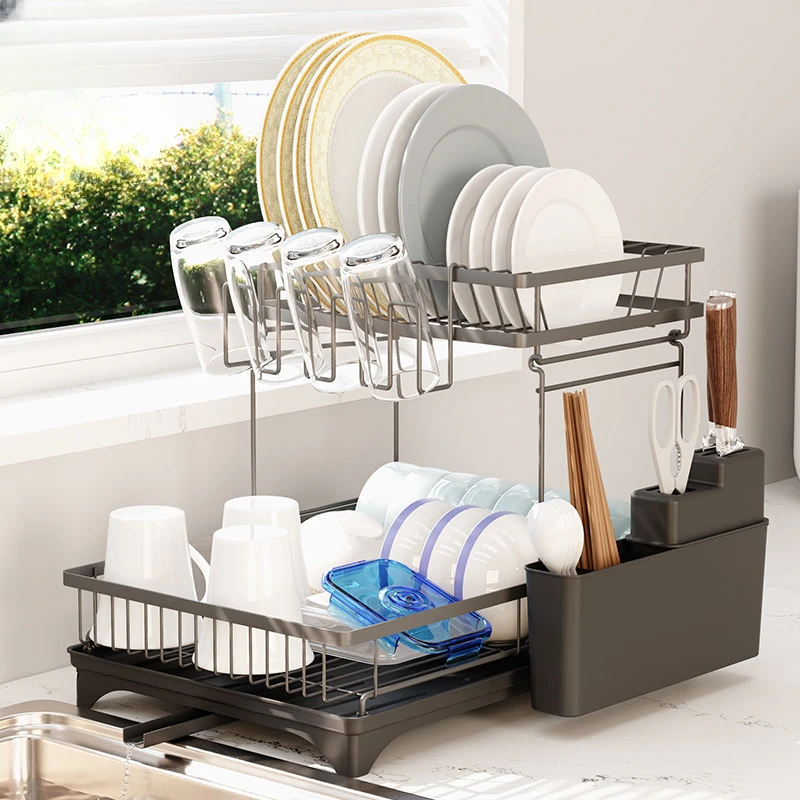 GGJkpbOwHere you can buy Multifunctional Dish Drying Rack Multi-layer Plate Rack with Drain Tray Storage Organizer Household Kitchen with free delivery to your post office.