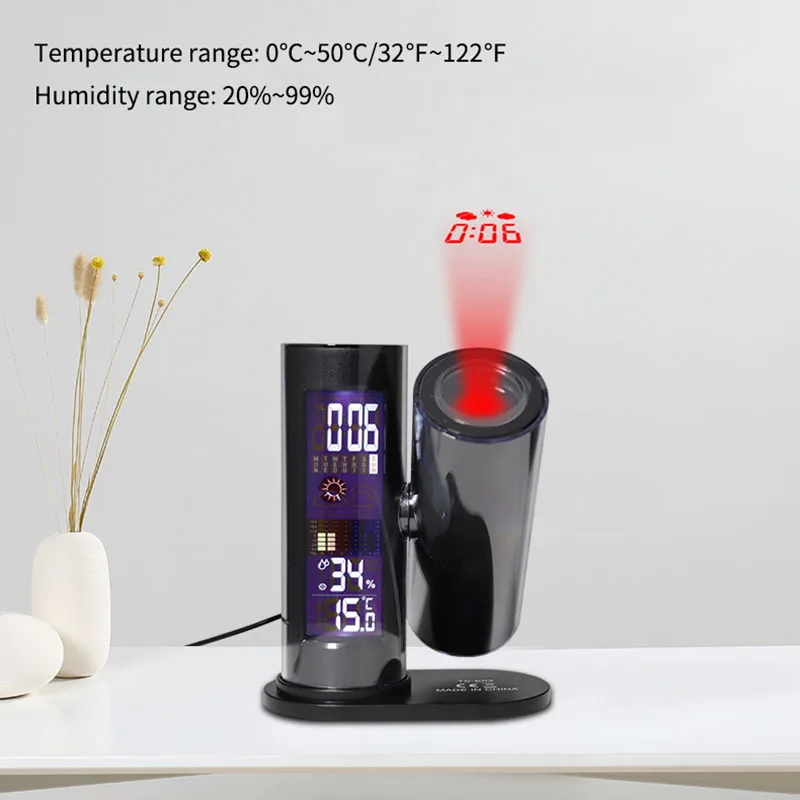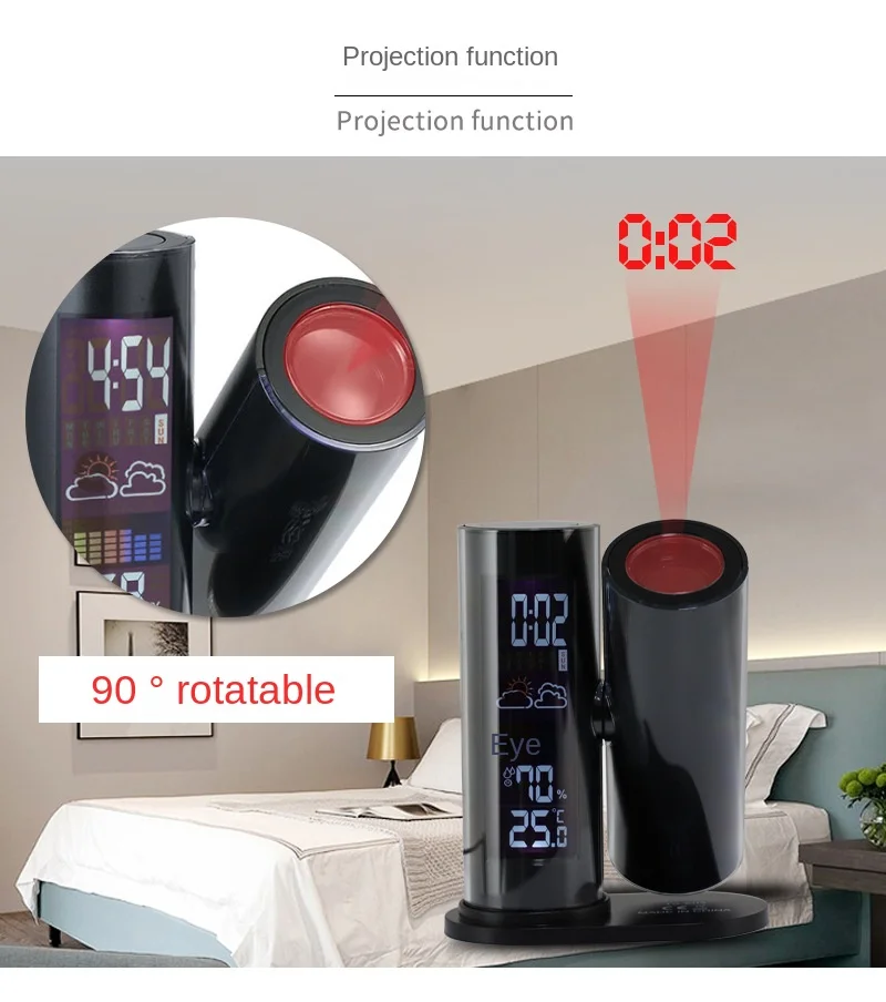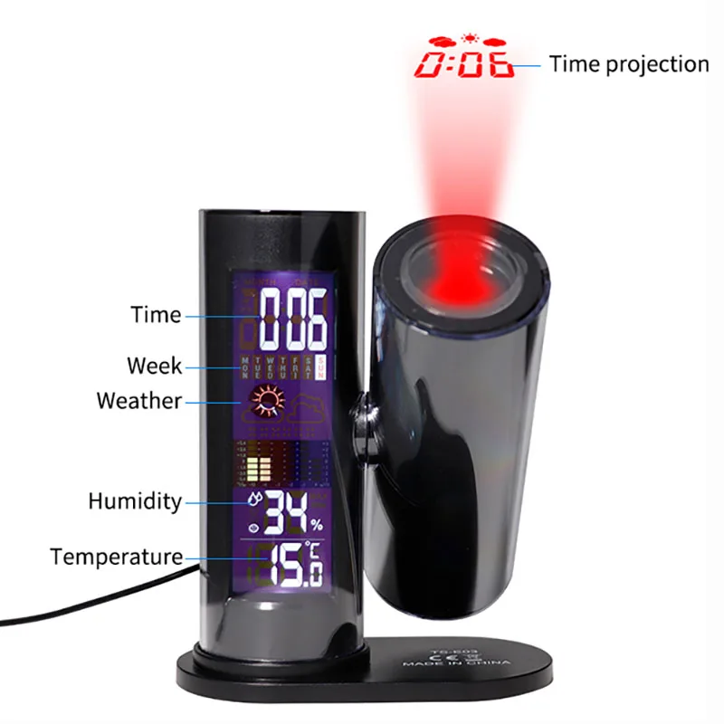 aqpxTjdHHere you can buy Multifunctional LED Digital Projection Clock LED Backlight Weather Forecast Temperature Humidity Degree Rotation Decor Creative with free delivery to your post office.
