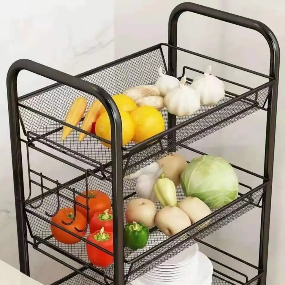 Multifunctional Movable Kitchen Storage Holders Racks Stackable Metal Basket Storage Shelf Fruit Vegetable Organizer With Wheel - Купить с бесплатной доставкой