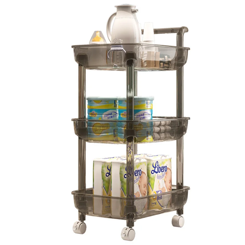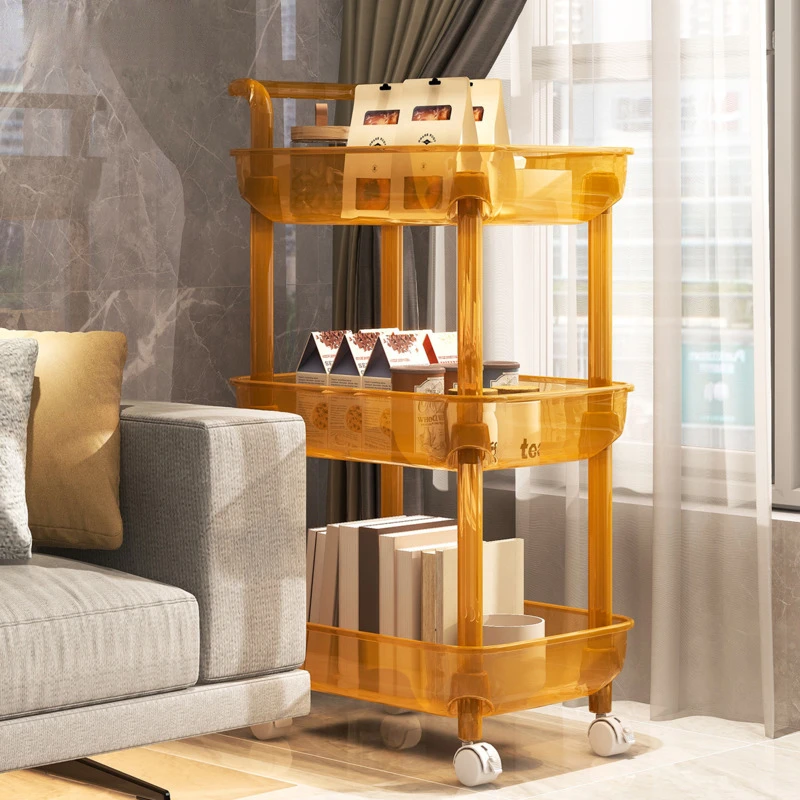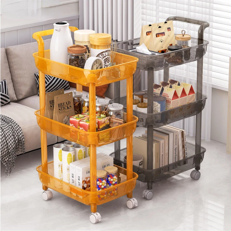 Multifunctional Plastic Storage Shelf Living Room Landing Snack Transparent Wheels Trolley Kitchen Removable Placement Frame - Купить с бесплатной доставкой