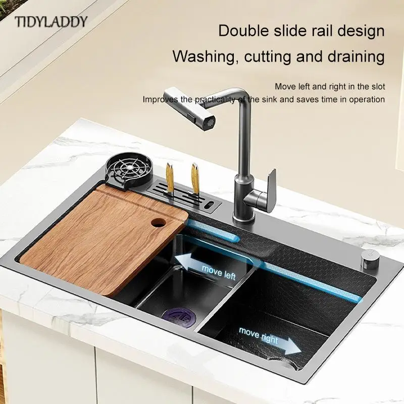 Multifunctional Rotating Pull-Out Waterfall Kitchen Faucets Kitchen Sink Stainless Steel Large Single Slot Kitchen Accessories - Купить с бесплатной доставкой
