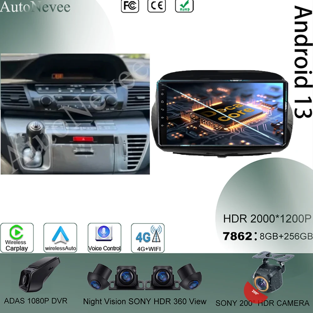 Multimedia Android 13 For Honda FR-V EDIX 2004 2005 2006 2007 - 2009 Navigation GPS QLED IPS Screen HDR Camera CarPlay Bluetooth - Купить с бесплатной доставкой