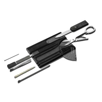 Тип: мультитулМатериал: нержавеющая стальСтрана-производитель: ШвейцарияЦвет: черныйНаименование модели: SwissCardВес, в граммах: 26model: SwissCard