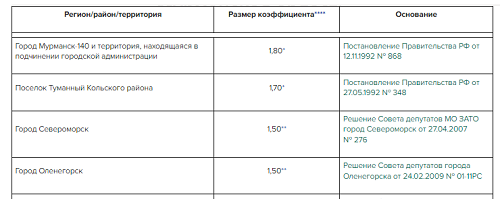 Мурманский северный коэффициент