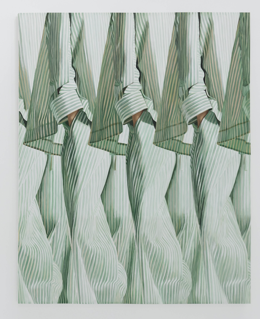 His current artistic exploration delves into the intricate web of emotions entwined with the commercialization and widespread consumption of fabric and clothing.