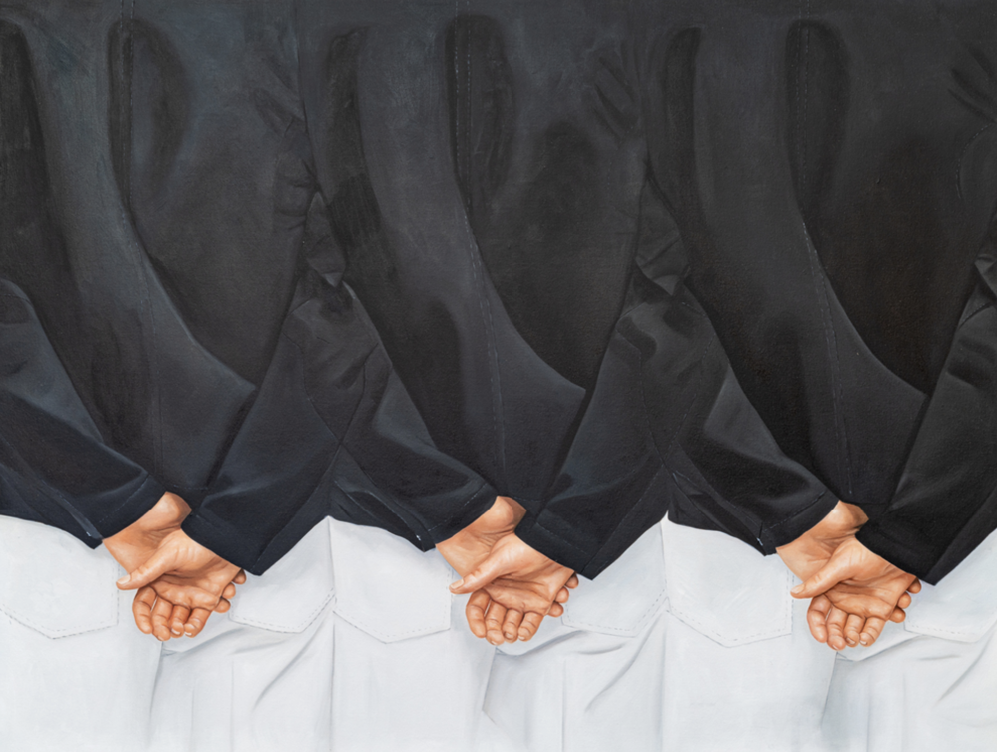 Executed in a realist style, Clarke's presence remains elusive within the paintings, allowing a mechanical coldness to overshadow the initial warmth.
