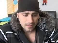 Devoter Typ kriegt von blonder deutscher Herrin Schwanz- und Eierbehandlung