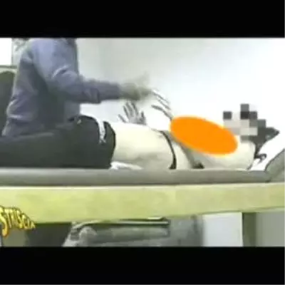 Russische Masseuse streichelt einen Kunden rasierte Muschi in Öl und steckt einen