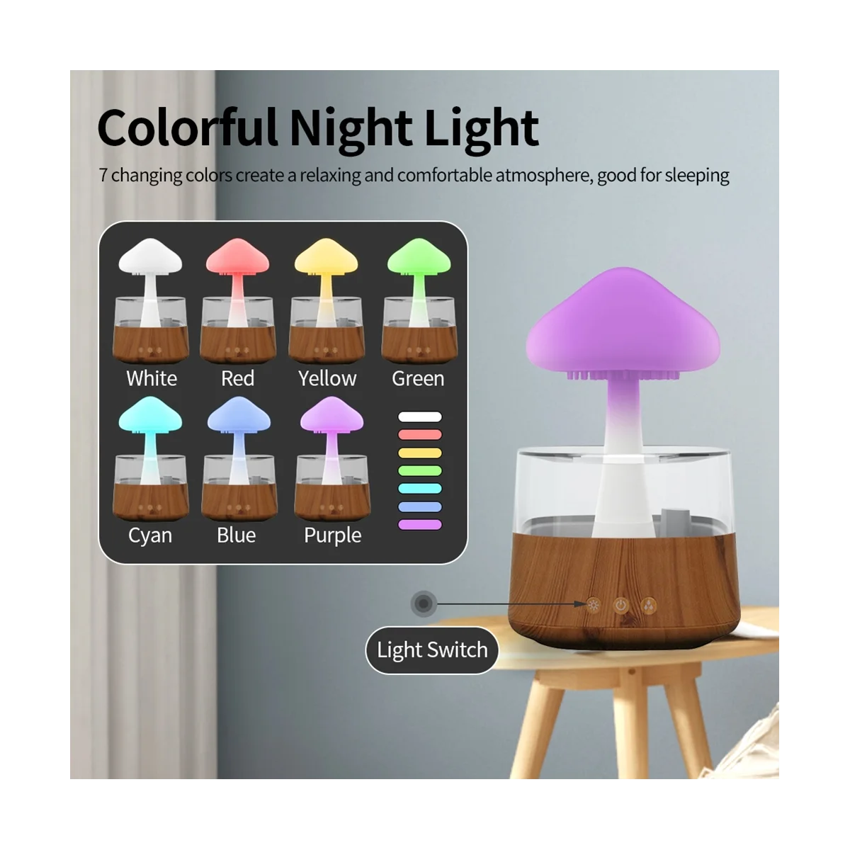 BwkuYjjXdHere you can buy Mushroom Air Humidifier Rain Cloud Night Light Smell Distributor Relax Aromatherapy Lamp Sounds Diffuser Remote Control with free delivery to your post office.