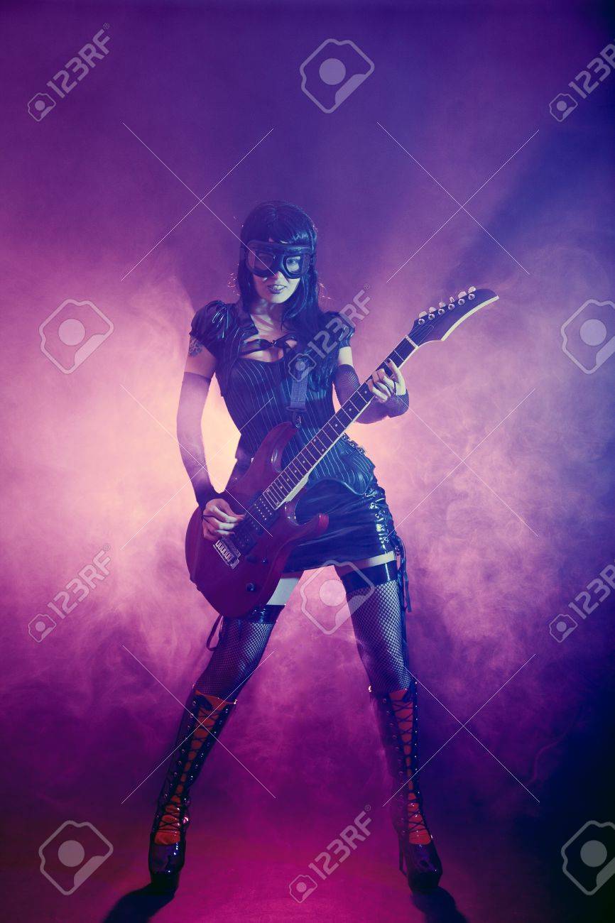 Music gothic teen playing with