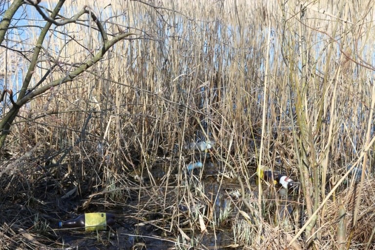 Берег вблизи деревни Лавриновичи пестрит рыбаками. И не только… В камышах – полиэтиленовые пакеты, стеклянные и пластиковые бутылки, другой мусор.
