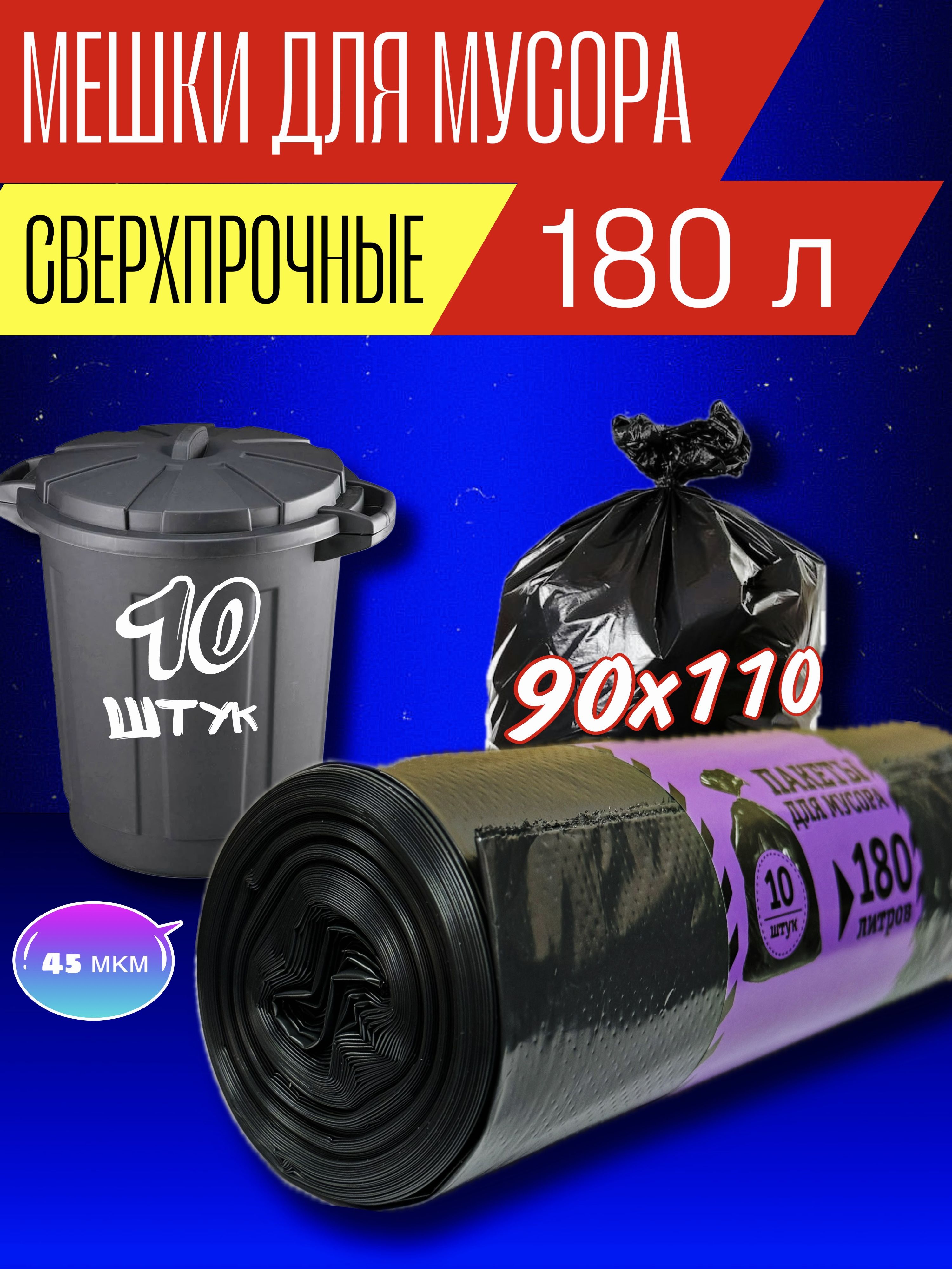 Мусорный пакет 180л 45мкм