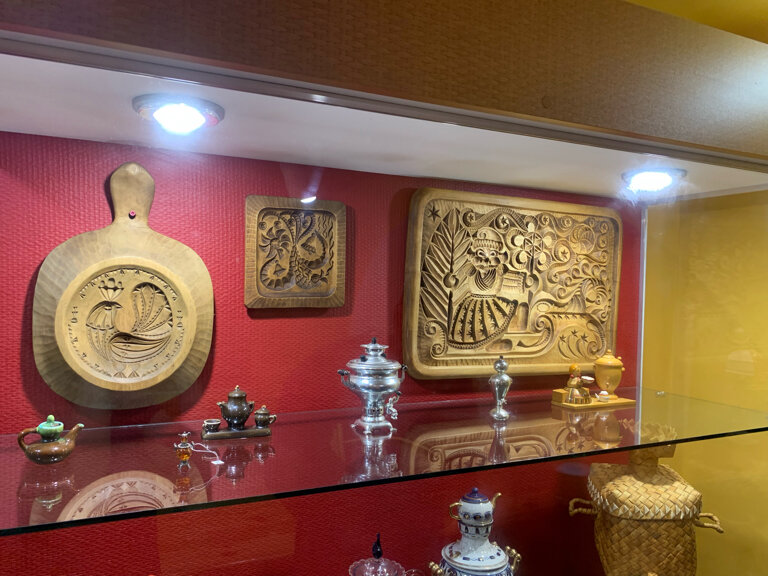 Впервые, мы посетили музей тверского быта в самом начале августа, во время нашего речного круиза А на этом фото перед нами столик для рукоделия . Как мы знаем, в те времена все женщины должны были уметь красиво вышивать, шить, украшать одежду и другие изделия .