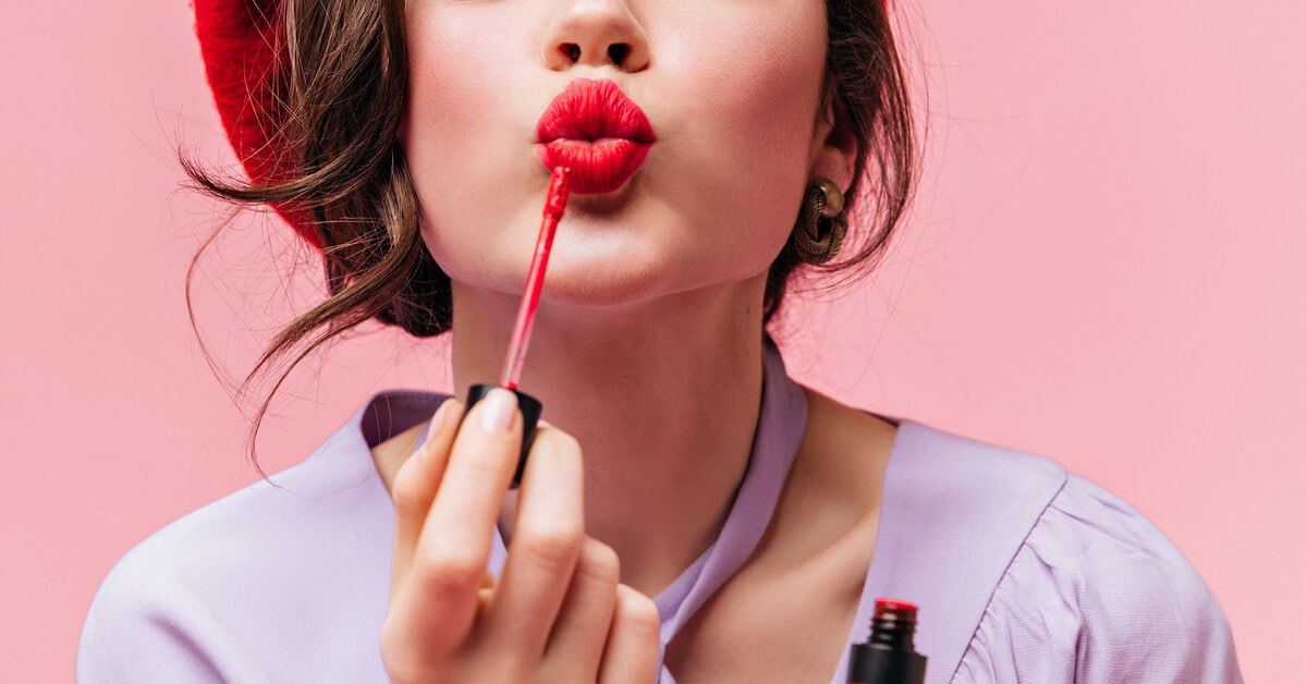 Мужчина съедает помаду
