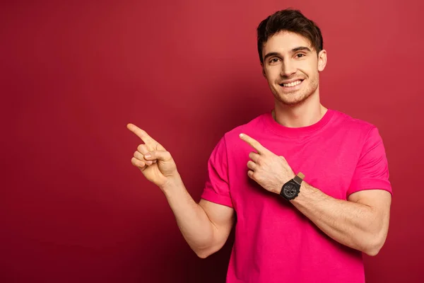 Парень в розовой рубашке - фото и фотографии . . . Передний вид шокированного мускулистого мужчины в белой футболке с закрывающими глазами с рукой, изолированной на розовом . . . Обескураженный . . .