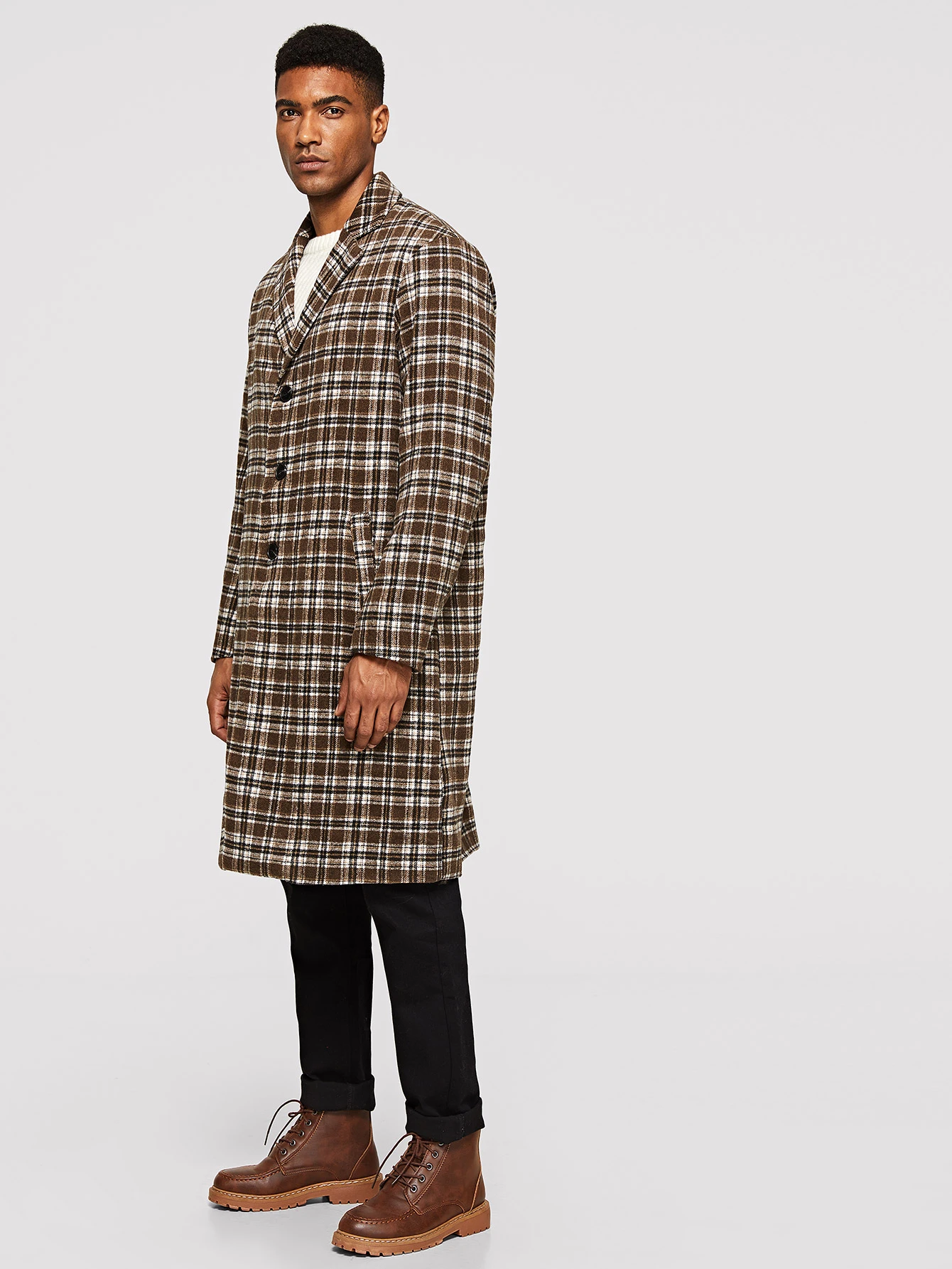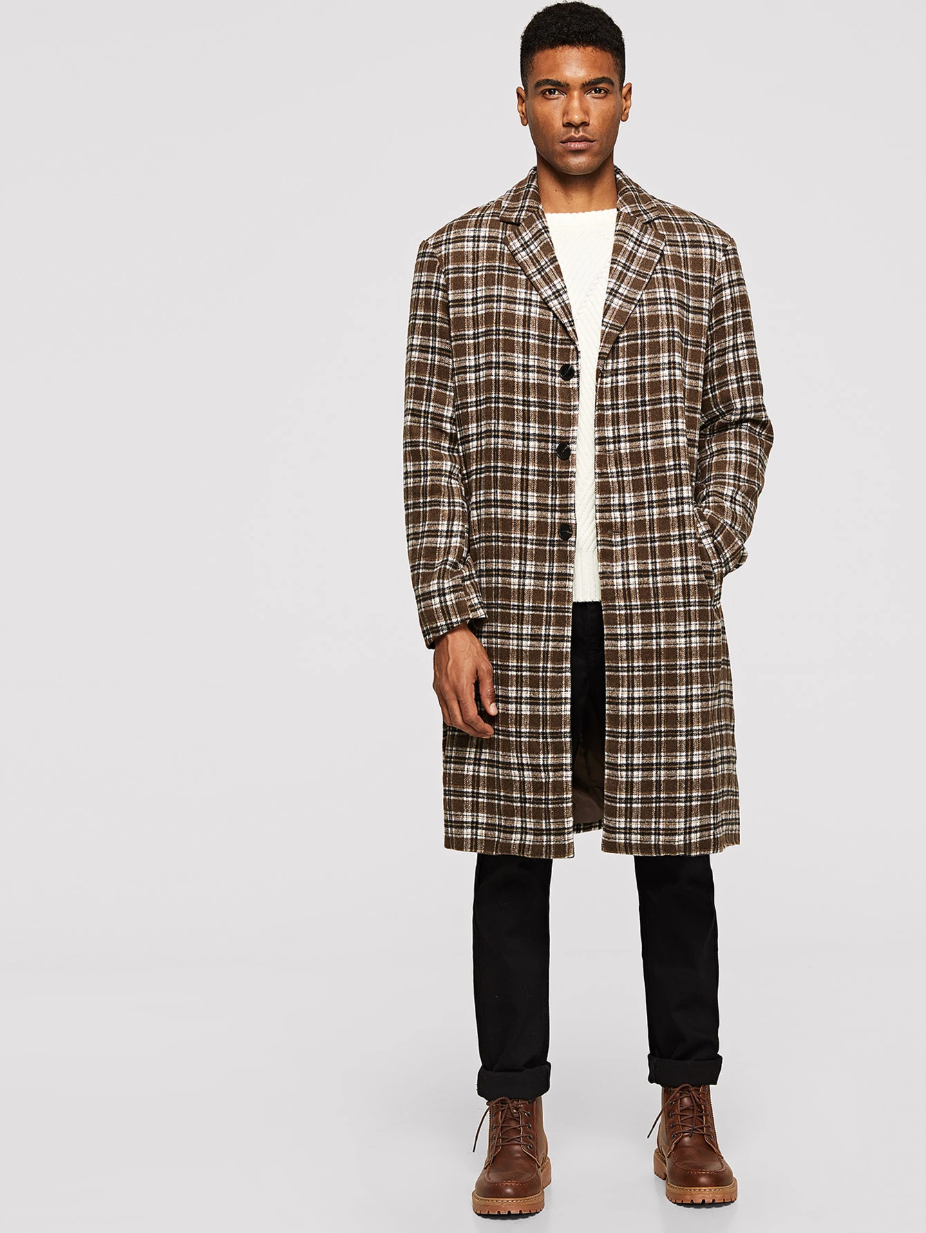 Клетчатое Пальто С Шарфом