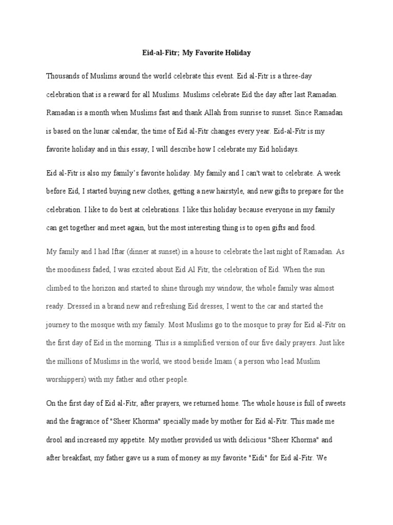 My Favorite Holiday, Sample of Essays