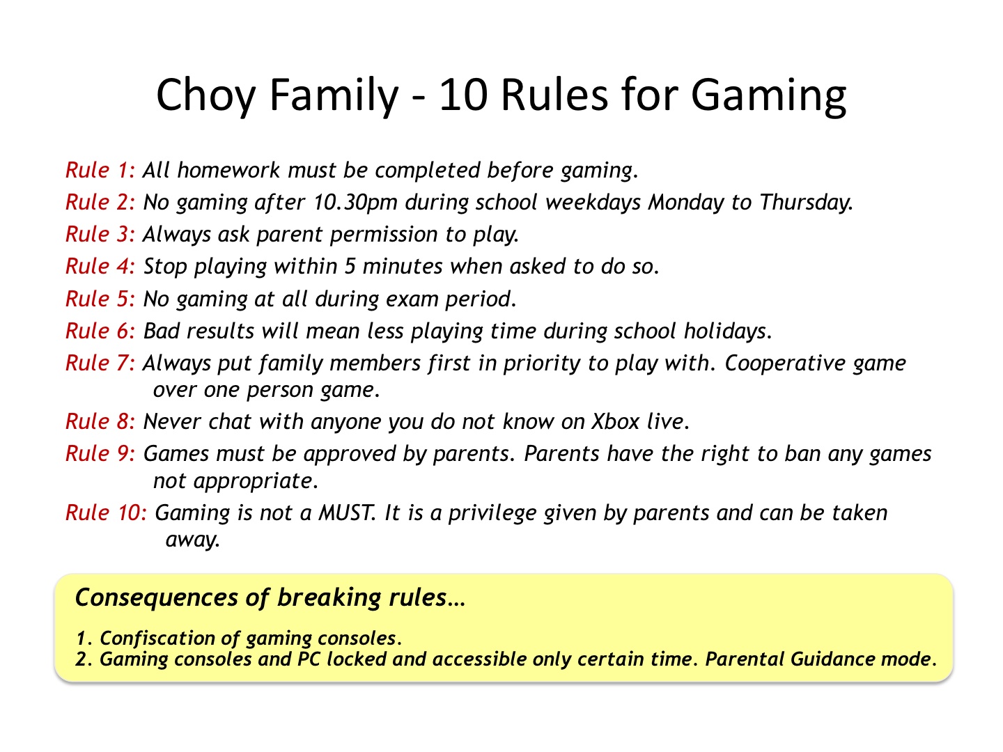 My family rules