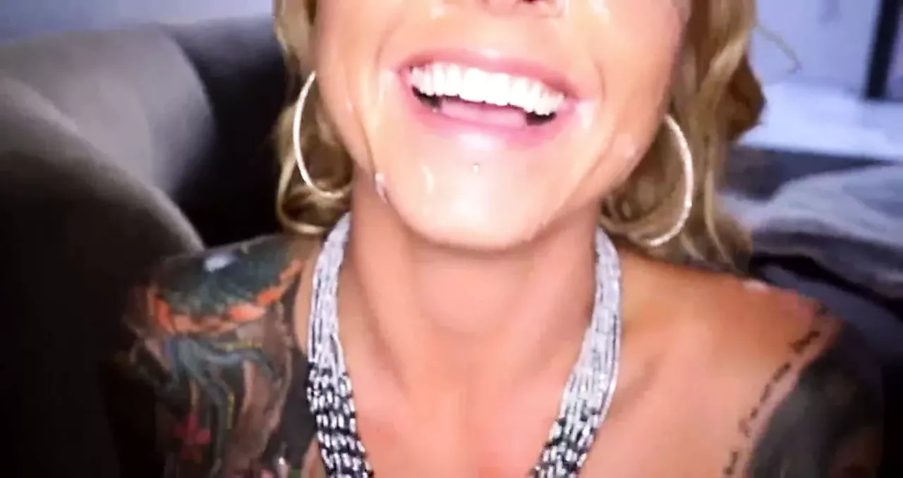 Slutty brunette bitch takes a hot facial from a tiny cock