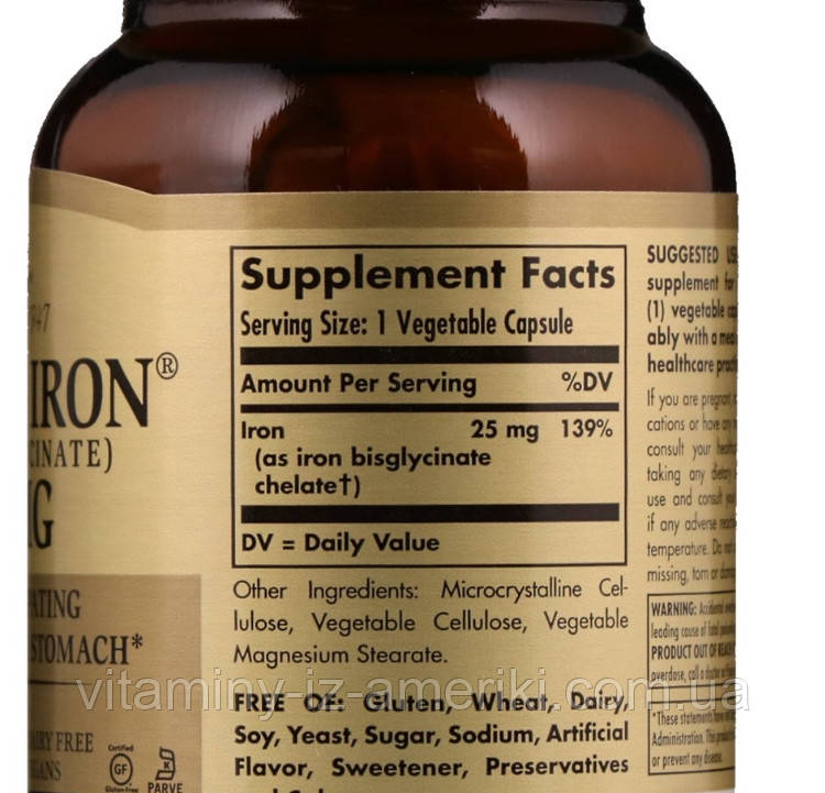 СОЛГАР (SOLGAR), Хелатное ЖЕЛЕЗО (Helated Iron), 25мг, 100таб, 8 .4$ . Купить: vk .cc/9xcwsL Железо в хелатной форме (связанное с аминокислотами), усваивается в разы лучше, чем минеральные соли и без побочных эффектов (без запоров, тошноты и тд)!