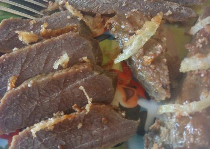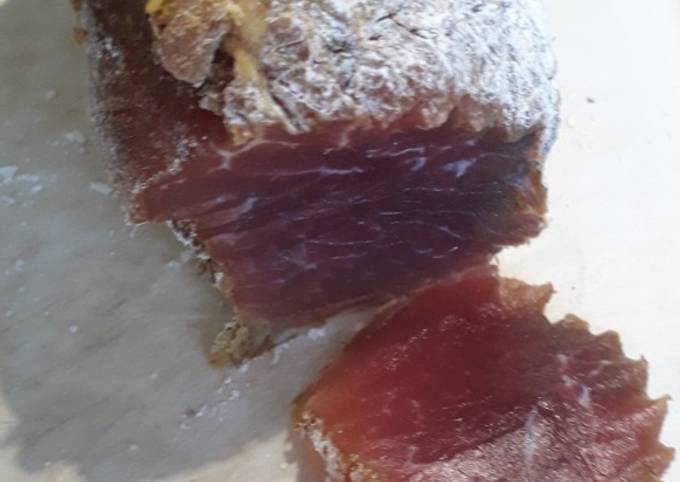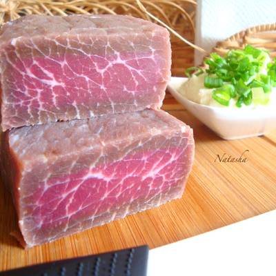 Этот рецепт из разряда "нетрудоёмкий" - минимум продуктов, а результат порадует, с оговоркой на любителя сырого вяленого мяса . Однозначно, нравится не всем, но попробовать стоит!