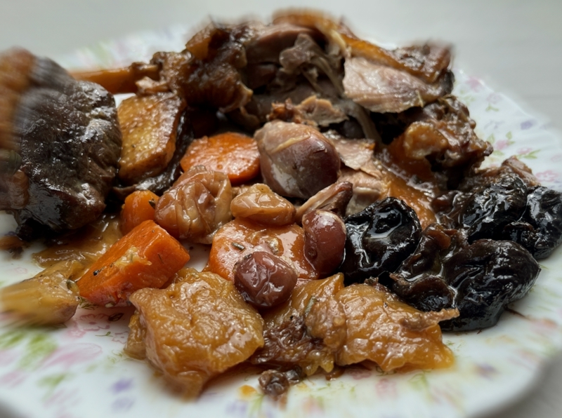 Мясо тушеное с курагой