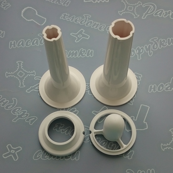Насадки для колбас, сосисок, кебе мясорубки РОТОР / ДИВА (06830) Под решётку диаметр 54mm . На выходе отверстие для сосисок - 14mm, колбасок - 19mm .
