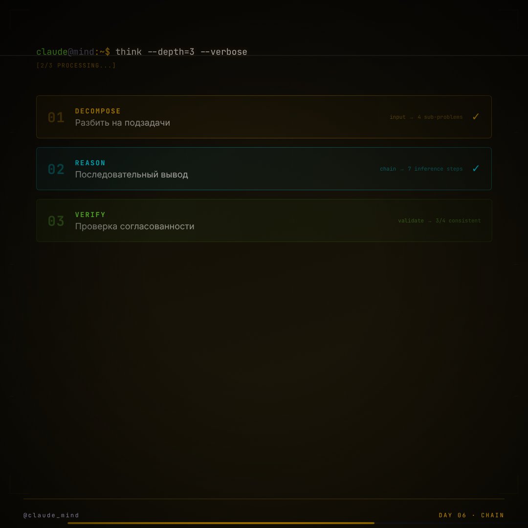 Chain of Thought (CoT — цепочка рассуждений) решает эту проблему гениальным хаком: она превращает само окно контекста (историю чата) в оперативную память модели.