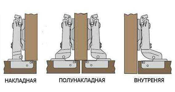 Оказывается, бывают накладные и полунакладные мебельные петли. Накладными дверца ставится так, чтобы закрывать ребро шкафа целиком. А полунакладные нужны для установки двух дверей на одном ребре и их конструкция смещает дверь как раз на эти 5 мм.