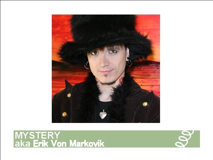 Erik von Markovik, more popularly known by his stage name, Mystery , is a Canadian pickup artist who developed a system of attracting women called The Mystery Method which gained him attention in the PUA community . This in turn led to him getting a VH1 show called The Pickup Artist .