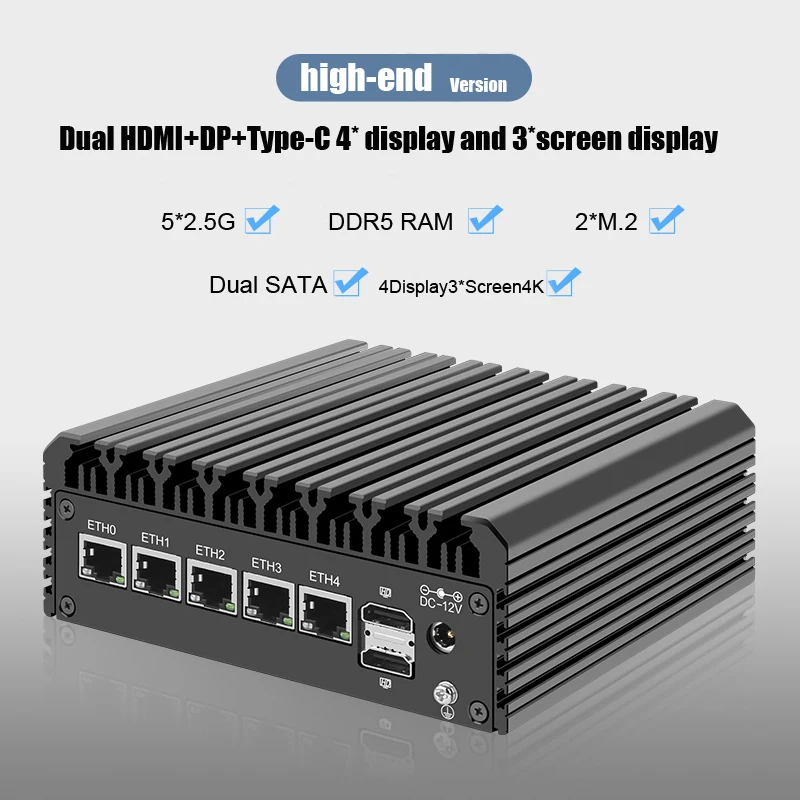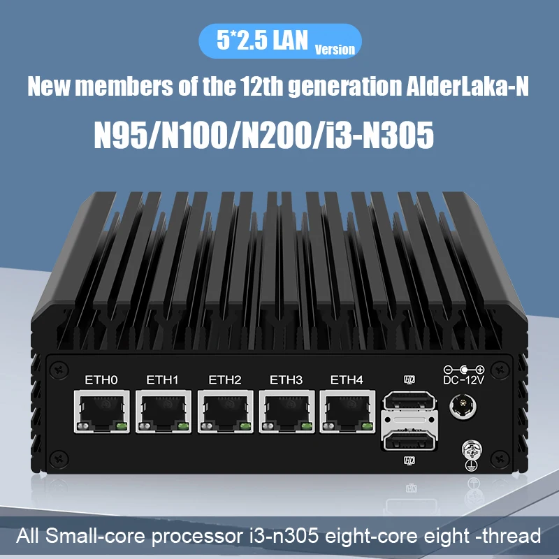 "N100 12th gen Fanless Mini PC with 5*LAN 2.5G i226V 4*Display 2*HDMI DP Type-c mini Router Computer Pfsense 2.7 Firewall win11" * Buy Now With Free Shipping Just For $229