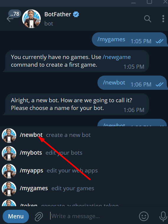 Enter menu for the bot.