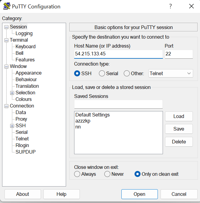 install and run putty.exe