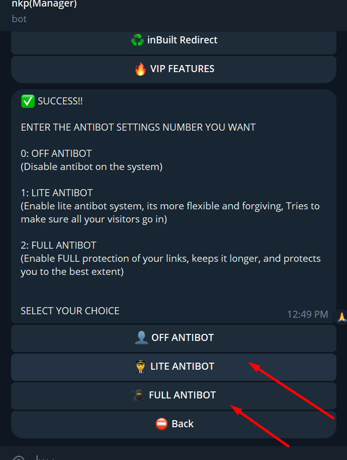 c. Setting antibot
