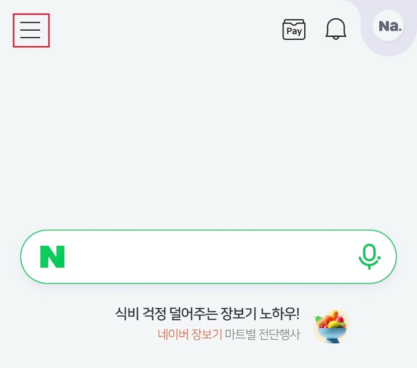 Заходим в NAVER. Нажмите на три полоски в верхнем левом углу.