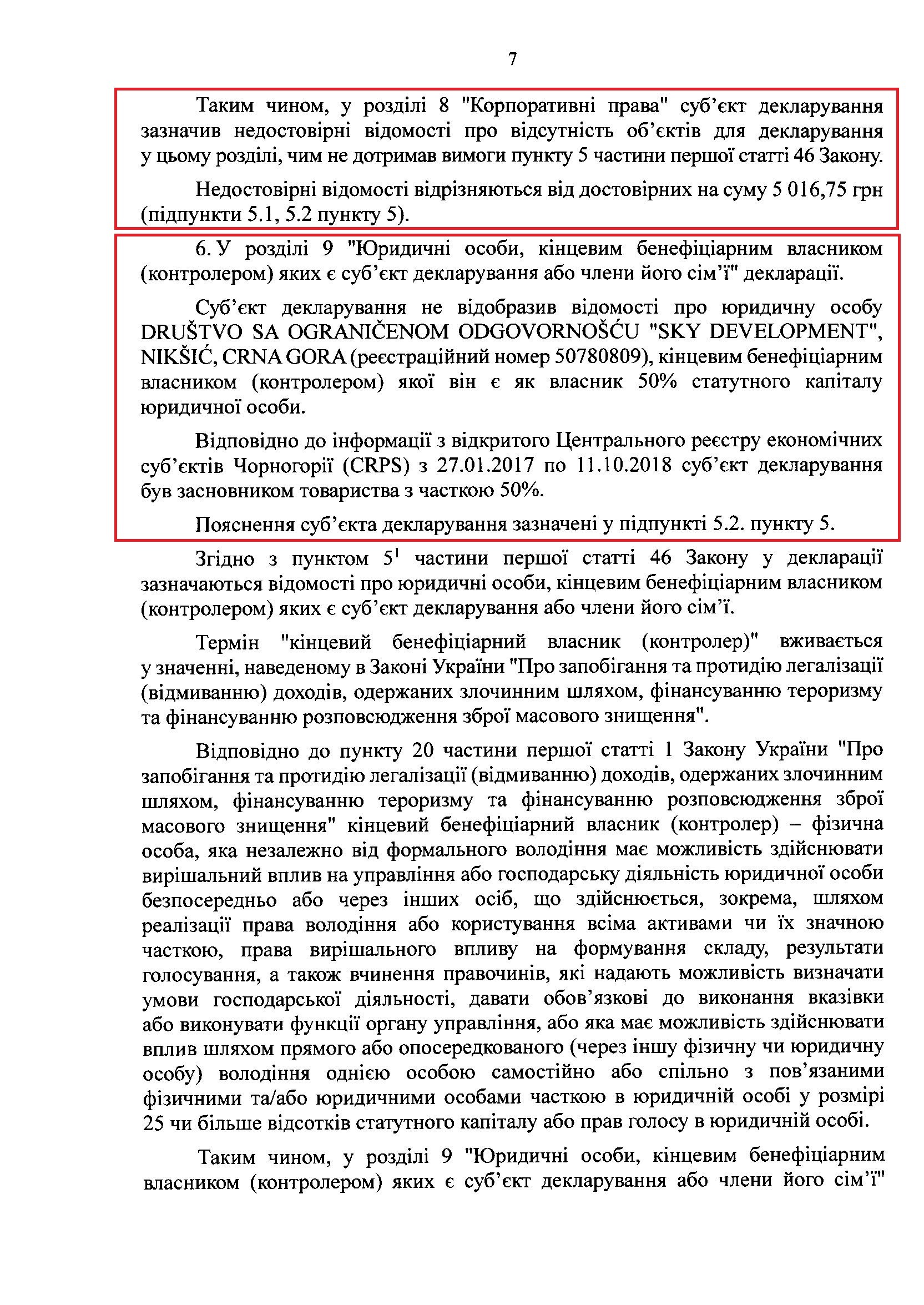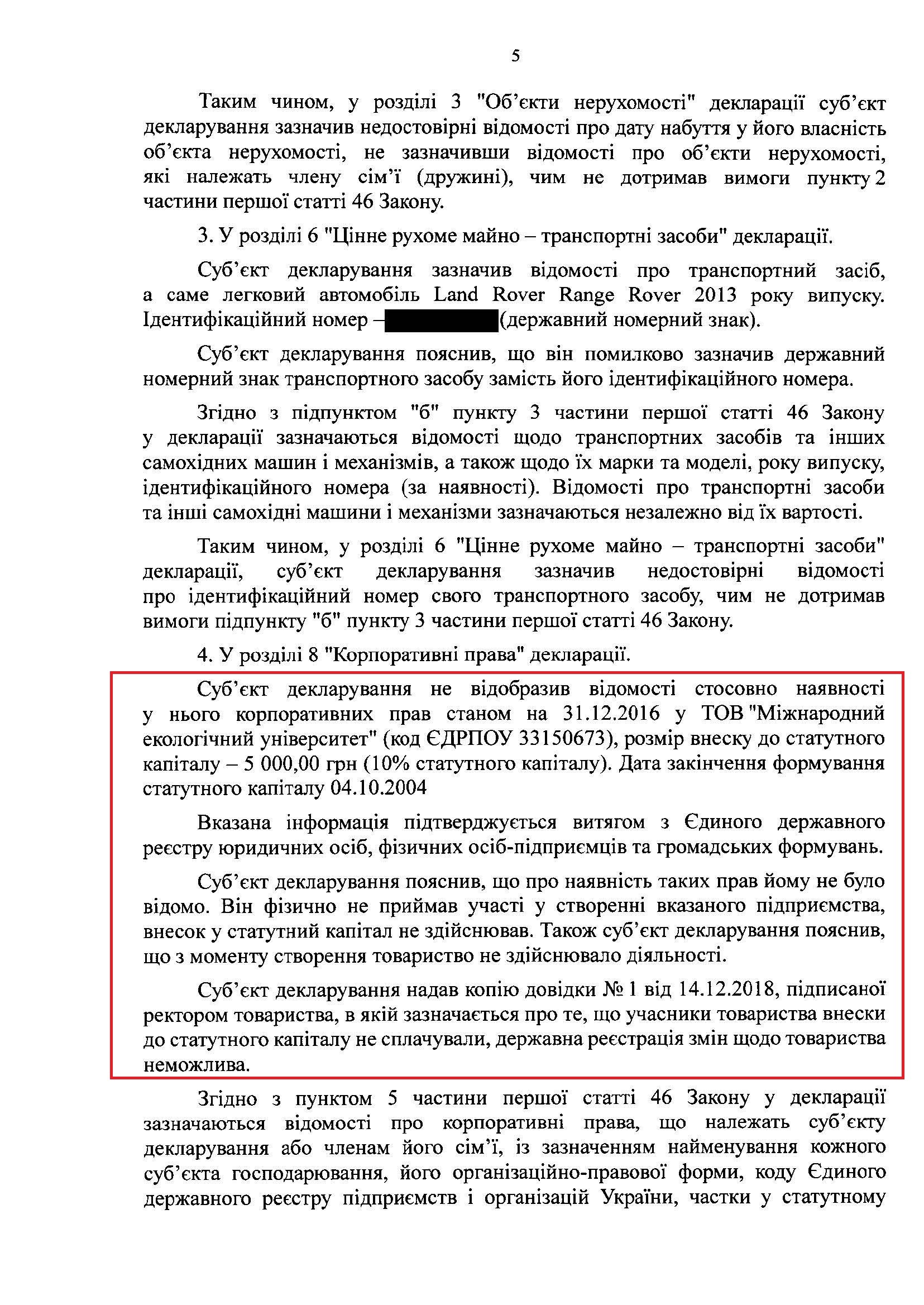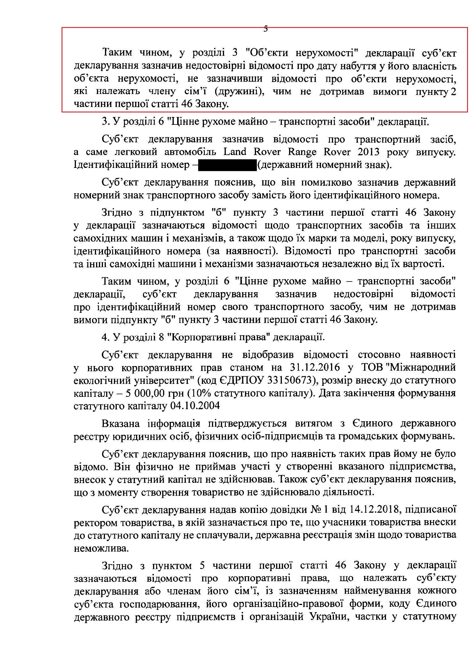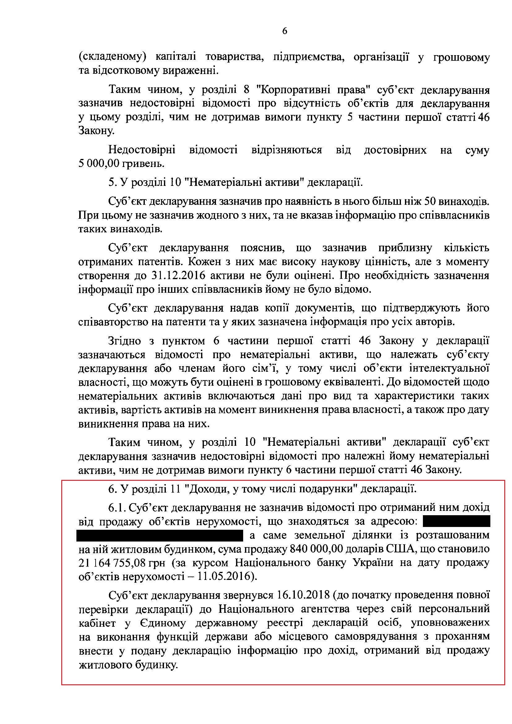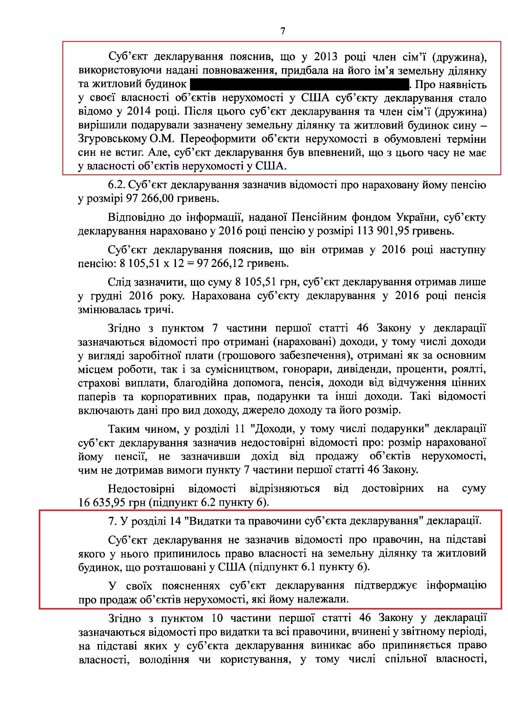 Незважаючи на те, що НАЗК підтвердило інформацію про невказану нерухомість за 21 млн грн, а також дім дружини, який коштує більше ніж 205 тис доларів, НАЗК вирішло, що порушення ректора не перевищують суму 100 прожиткових мінімумів (160 000 грн) і тому правопорушень НЕМАЄ. Це, звичайно, вказує на те, що НАЗК у своїх висновках було не об'єктивне і посприяло самому Згуровському.