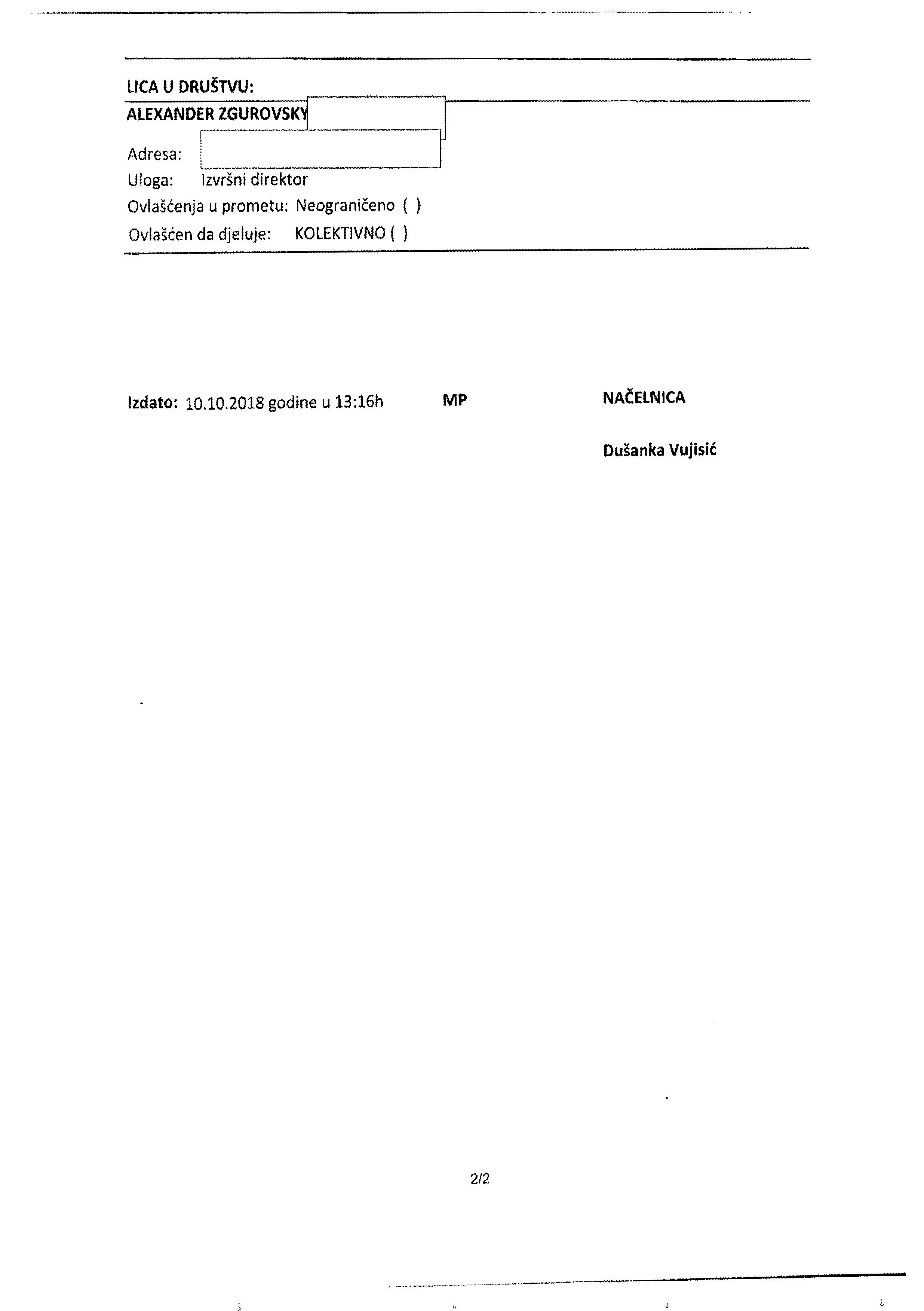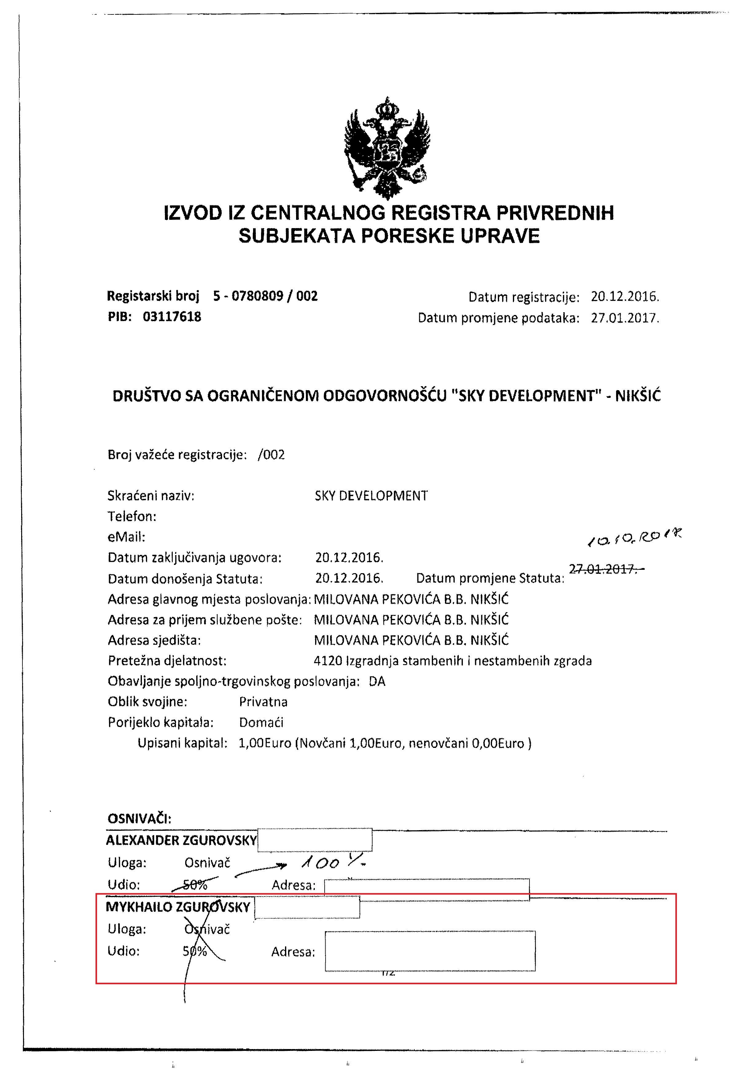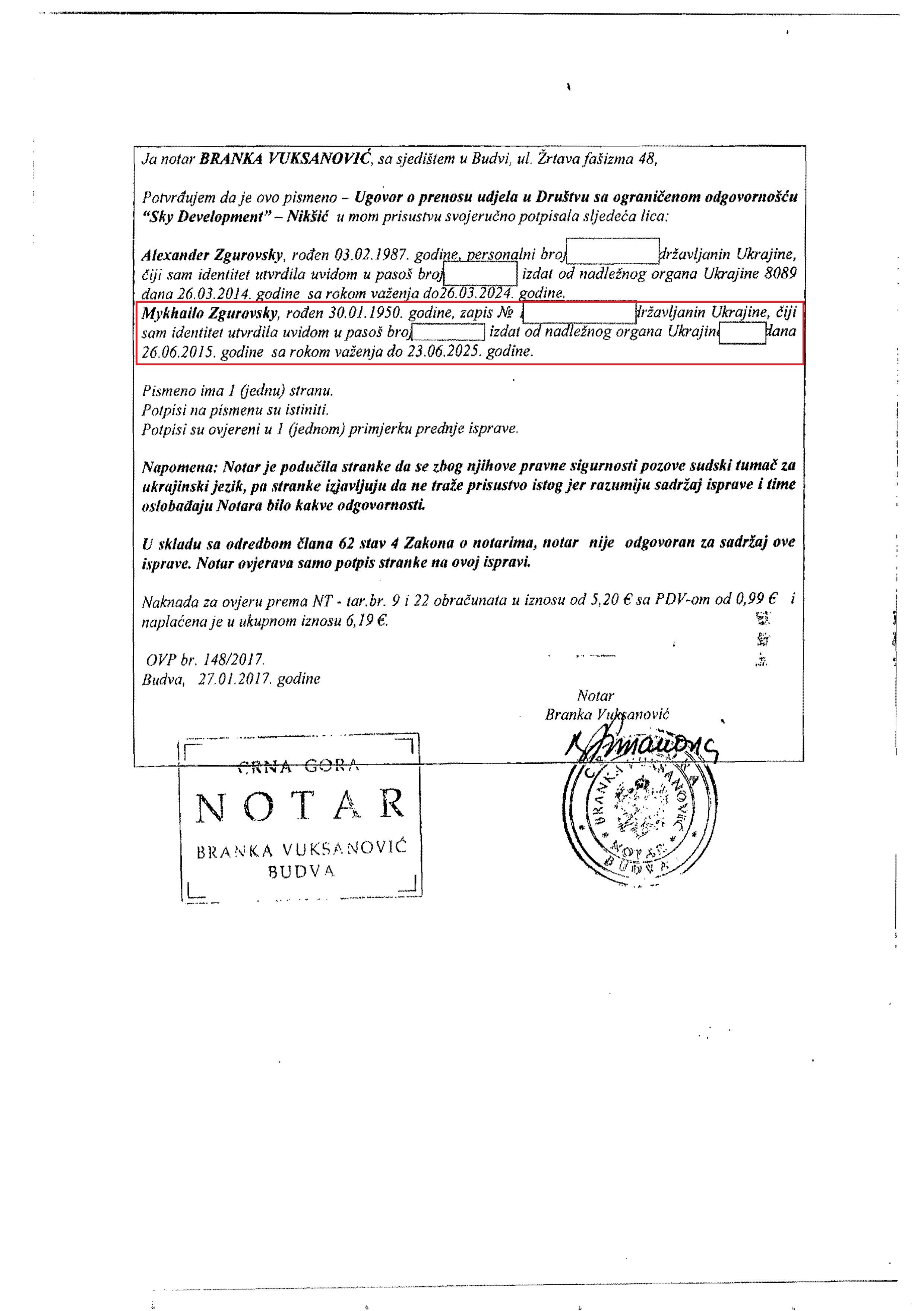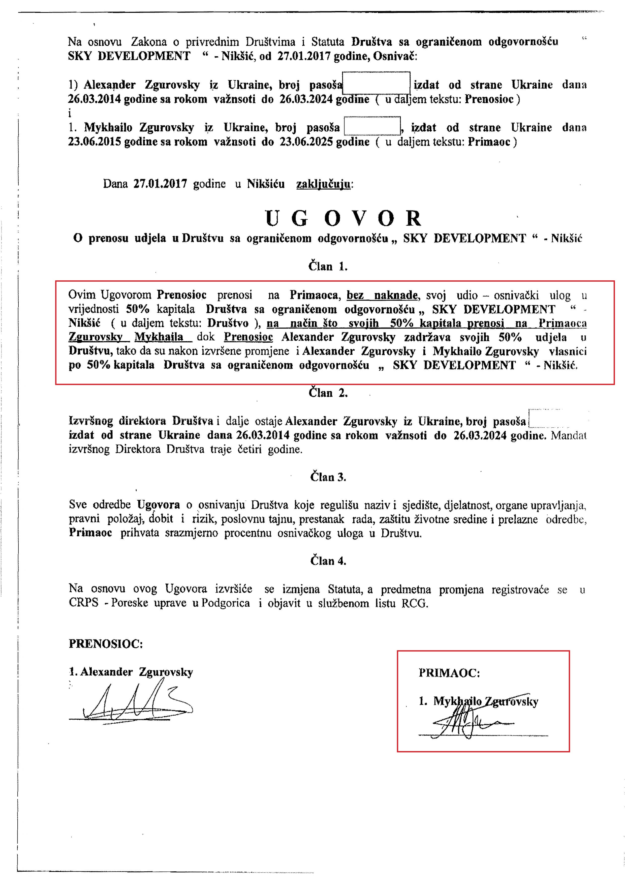 Ми вперше публікуємо скан-копію договору (1-2), за яким в січні 2017 Олександр Згуровський передає ректору Згуровському 50% акцій, а також витяг з реєстру Чорногорії (3-4), датований 10.10.2018, перед тим, як в реєстр внесуть відповідні зміни про те, що ректор вийшов з компанії.