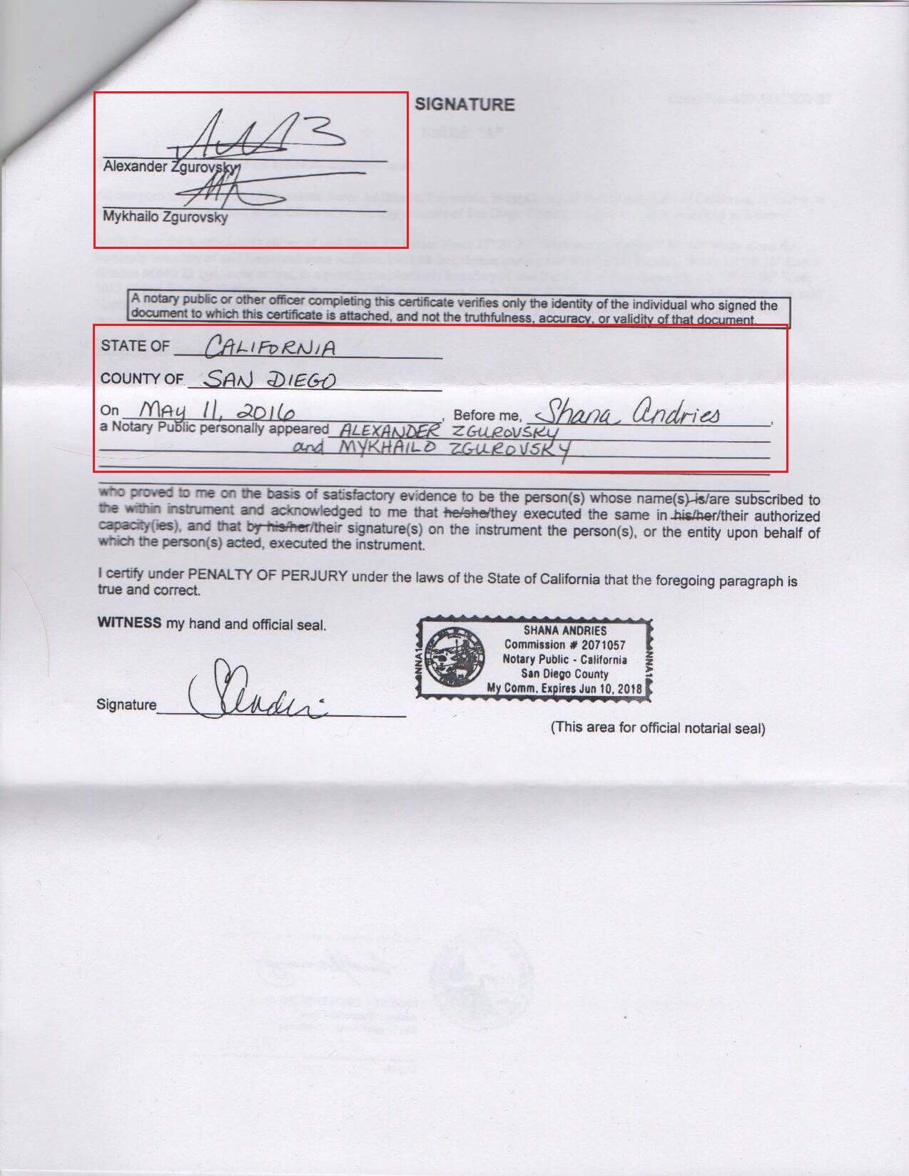 Ми вперше публікуємо скан-копію договору, за яким у 2016 році ректор Згуровський разом зі своїм сином передають права на цю нерухомість, підписуючи власноруч документи у нотаріуса в Каліфорнії.
