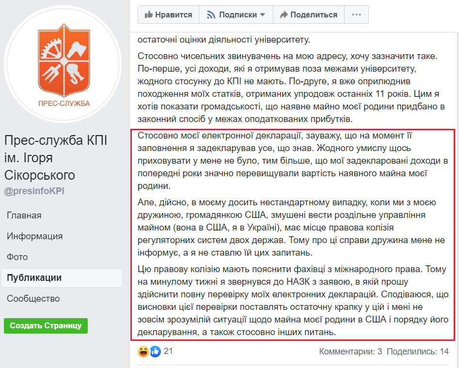 Також маємо засвідчити, що ректор брехав у своїх поясненнях до НАЗК, маніпулював і брехав студентам під час мітингу та загалу через прес-службу КПІ.