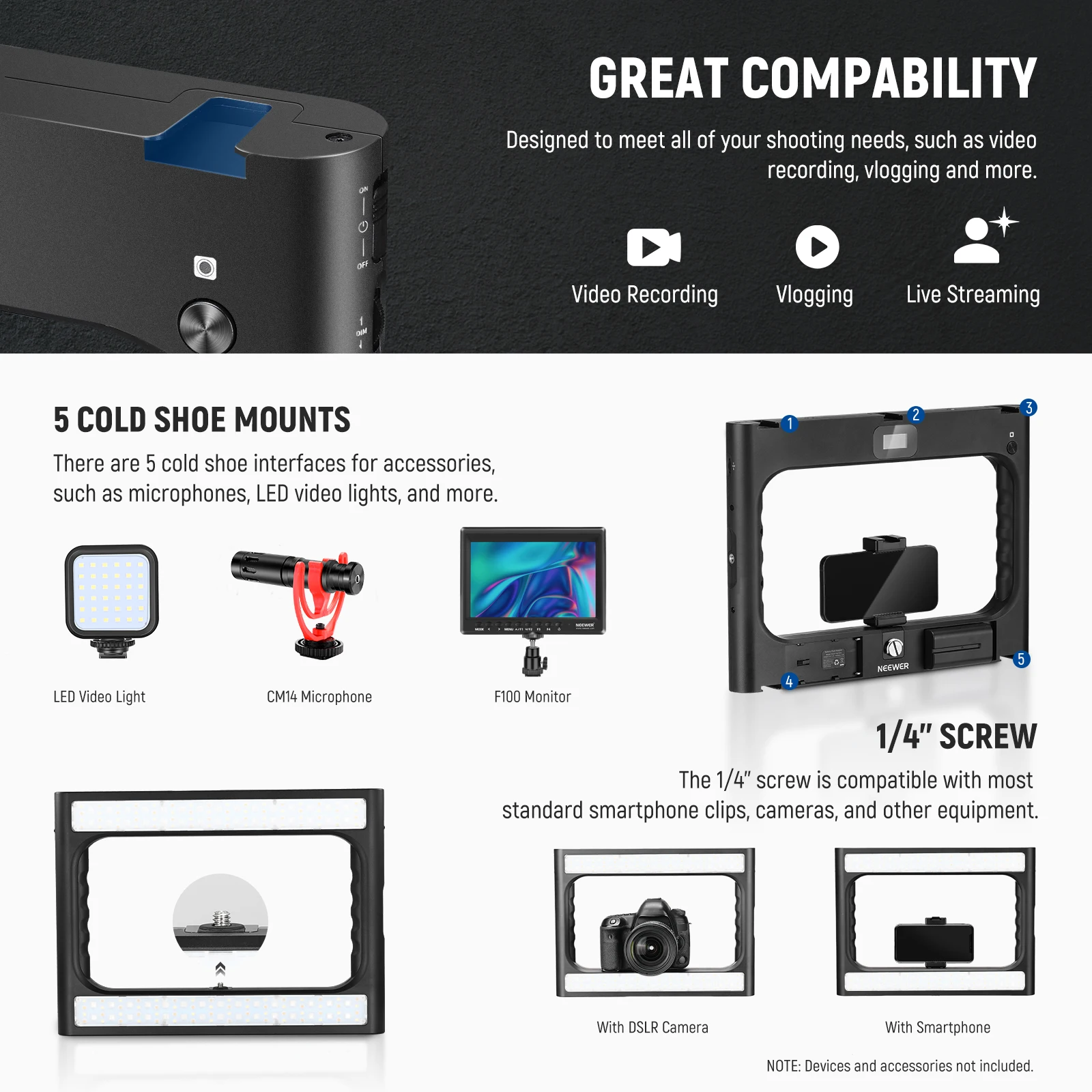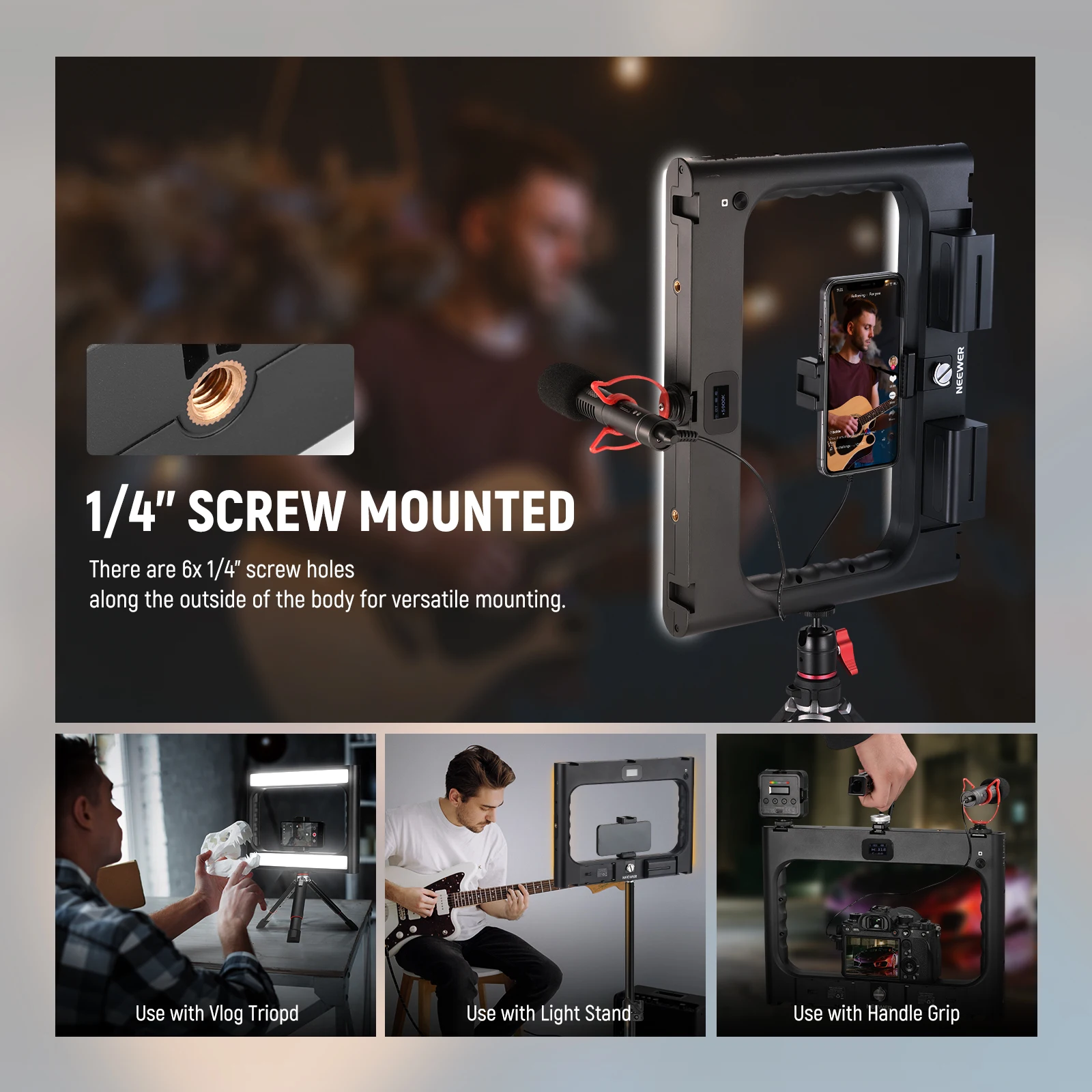 MRClmHPdiHere you can buy NEEWER RGB-A111 II Smartphone Video Rig with Light Kit, Support Vertical Shoot, Handheld Phone Camera Cage Stabilizer with free delivery to your post office.
