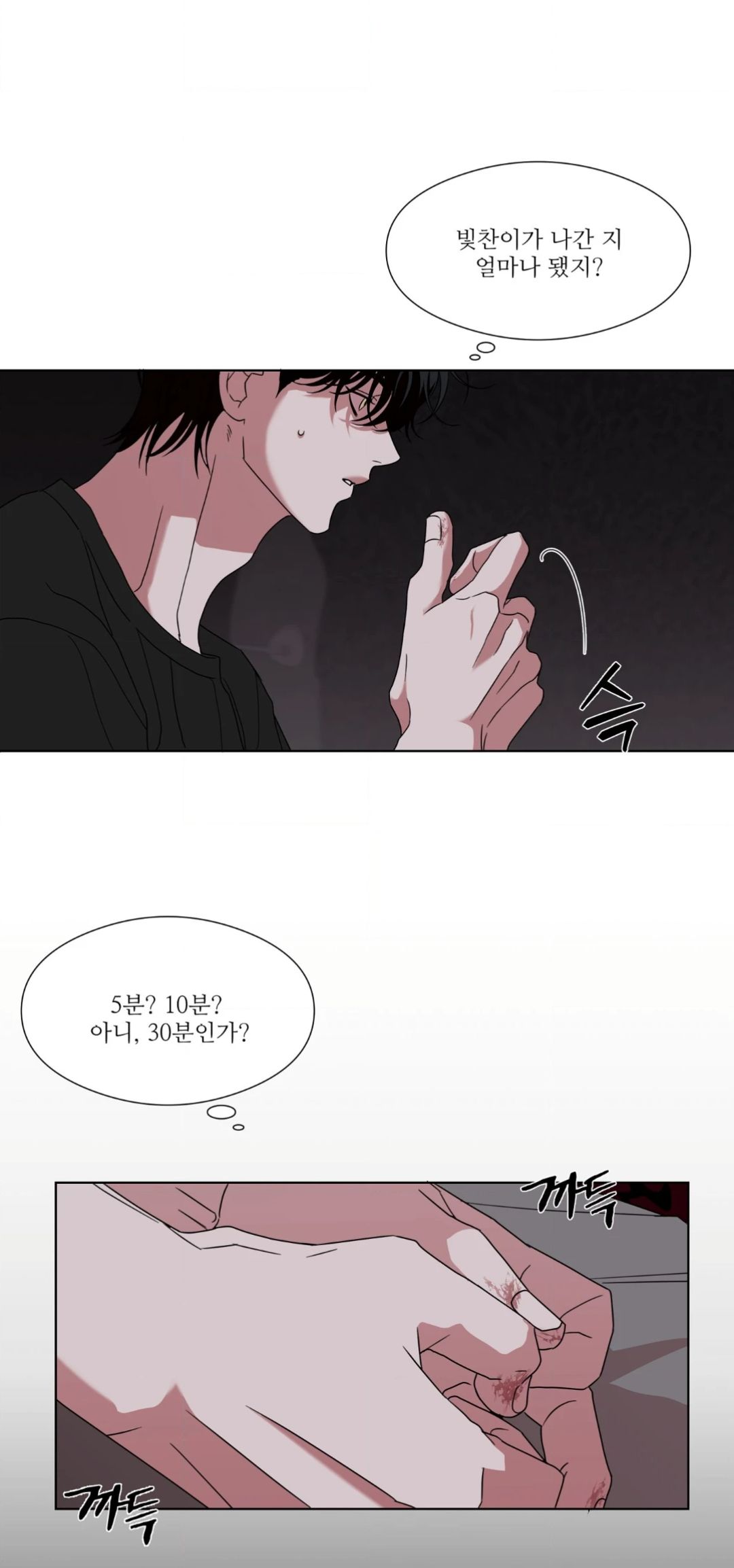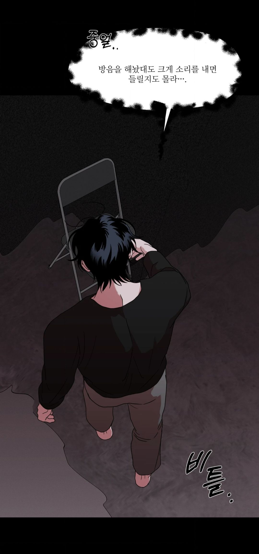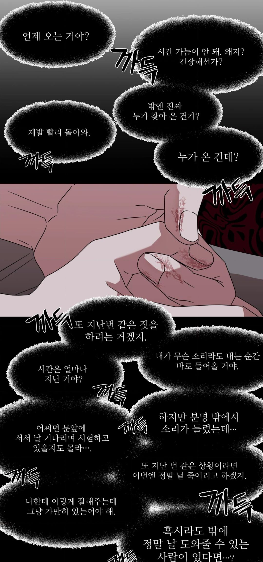 💭 Когда он вернётся? Почему я совсем не ориентируюсь во времени? Почему так нервничаю? Неужели кто-то действительно меня ищет? Кто это пришел? Пожалуйста, возвращайся скорее. Он сделает то же самое, что и в прошлый раз: вернётся, как только я подниму шум. Сколько времени прошло? Я определённо слышал звуки снаружи. Может быть, он стоит у двери и ждет меня, испытывая меня... … Он так добр ко мне, пожтому я должен оставаться на месте. А там есть кто-то, кто действительно может мне помочь...?