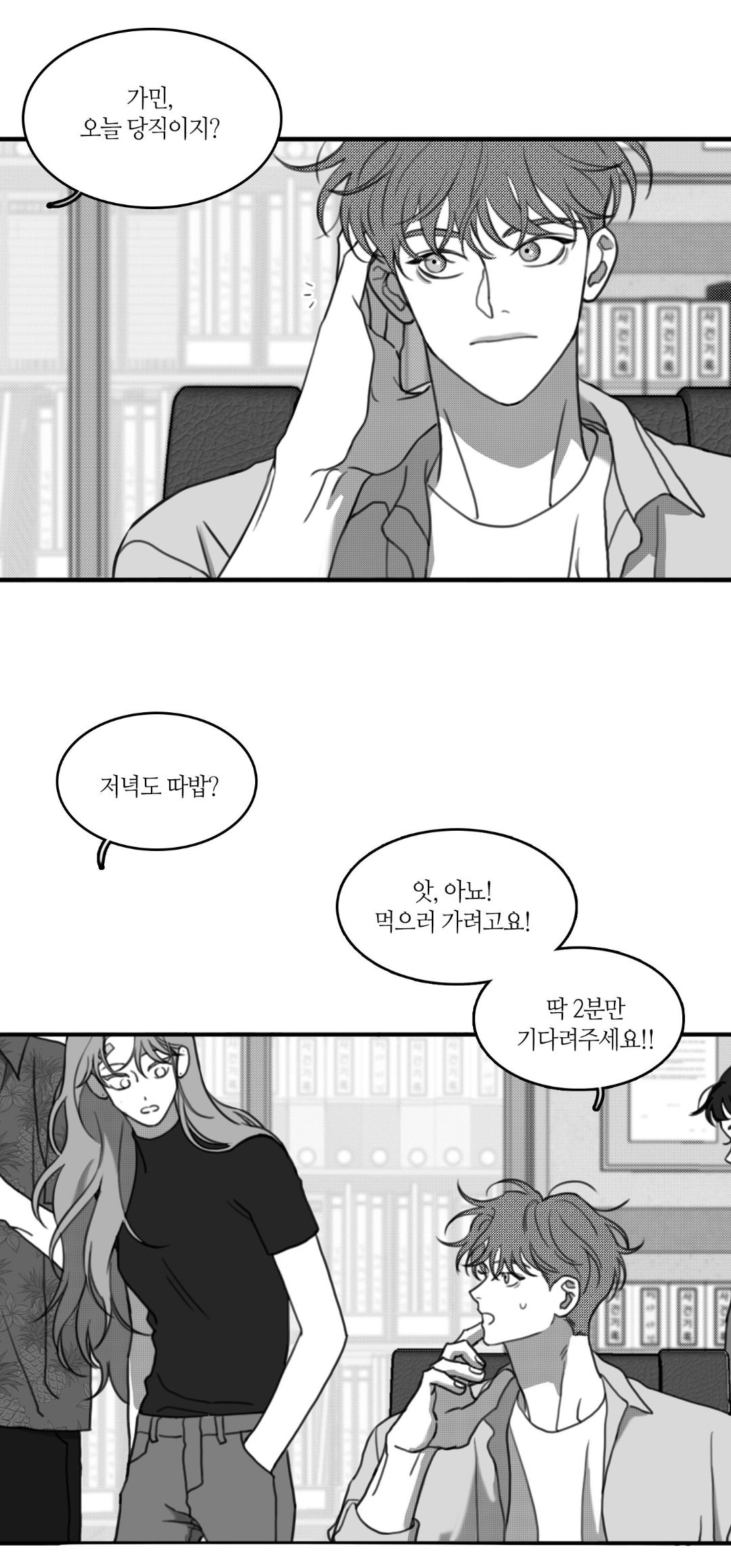 - Гармин, вы сегодня на дежурстве, да? Не хотите поужинать? - О, нет! Я пойду есть! Пожалуйста, подождите всего 2 минуты!!