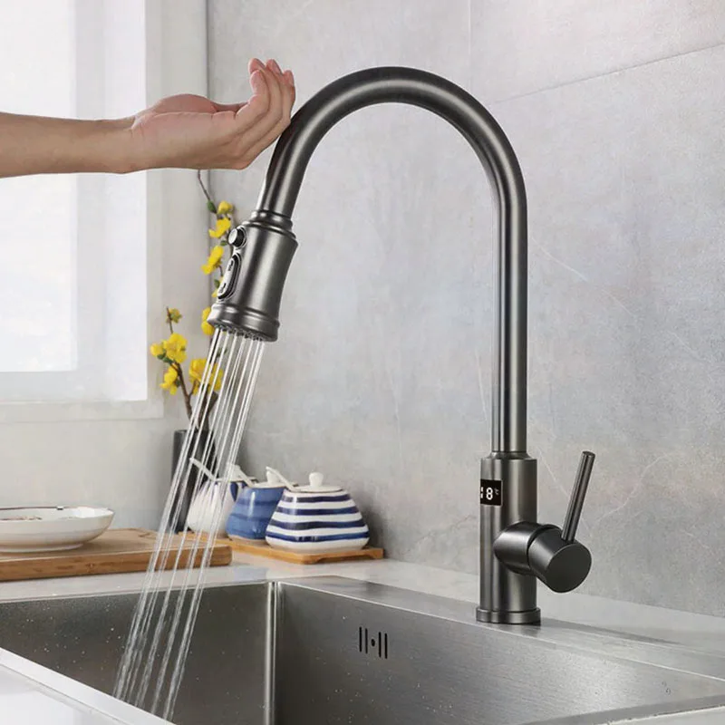 "NEW Digital display Automatic Smart Kitchen Faucet Deck Mounted Cold& Hot Water with Handle Two Model water out pull" * Buy Now With Free Shipping Just For $95